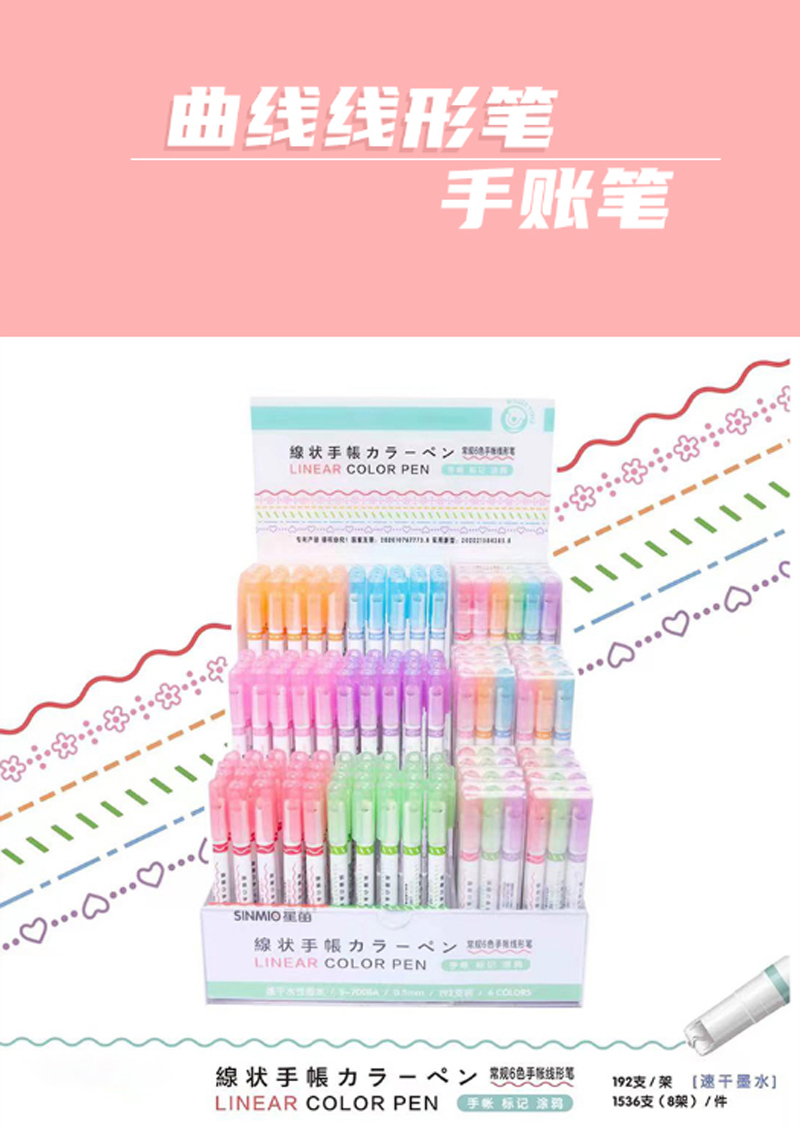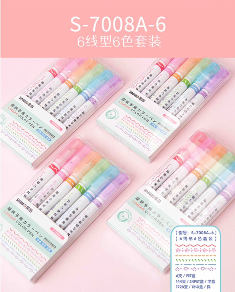 商品名称:递乐-3169-手账线形记号笔-6色-单位:组