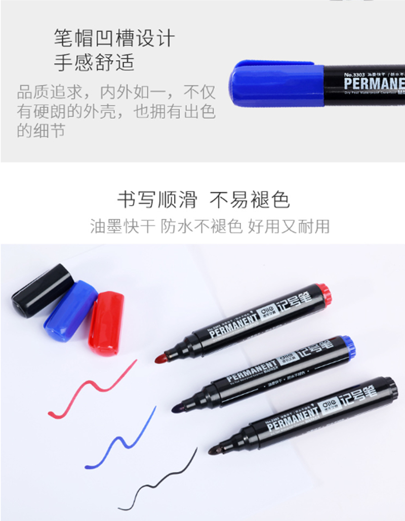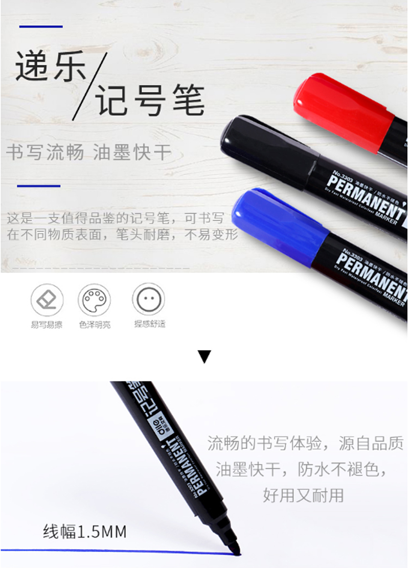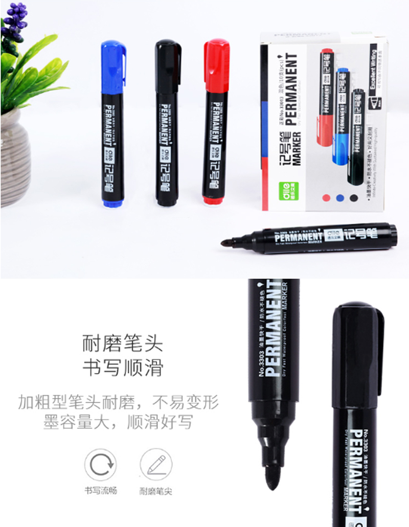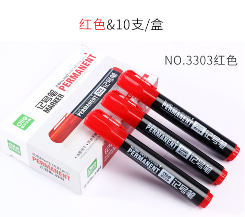 商品名称:递乐-3303-马克笔记号笔-10支/盒-红色-单位:盒-起订量3盒