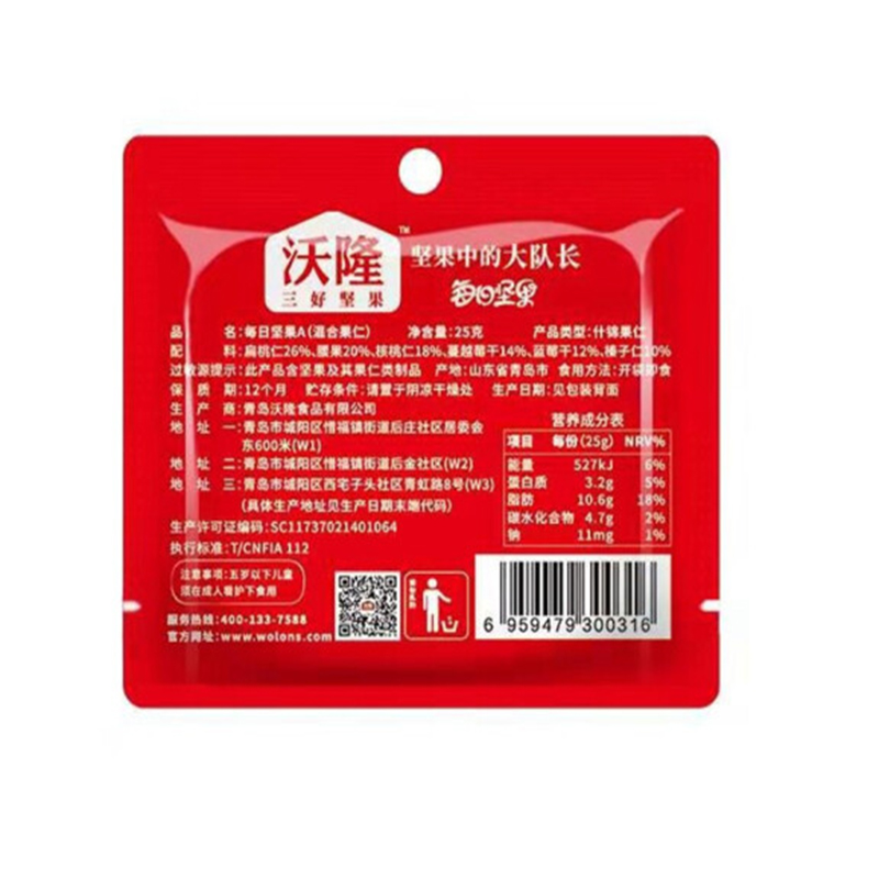 商品名称:沃隆 每日坚果(A)175g袋装 单位:袋