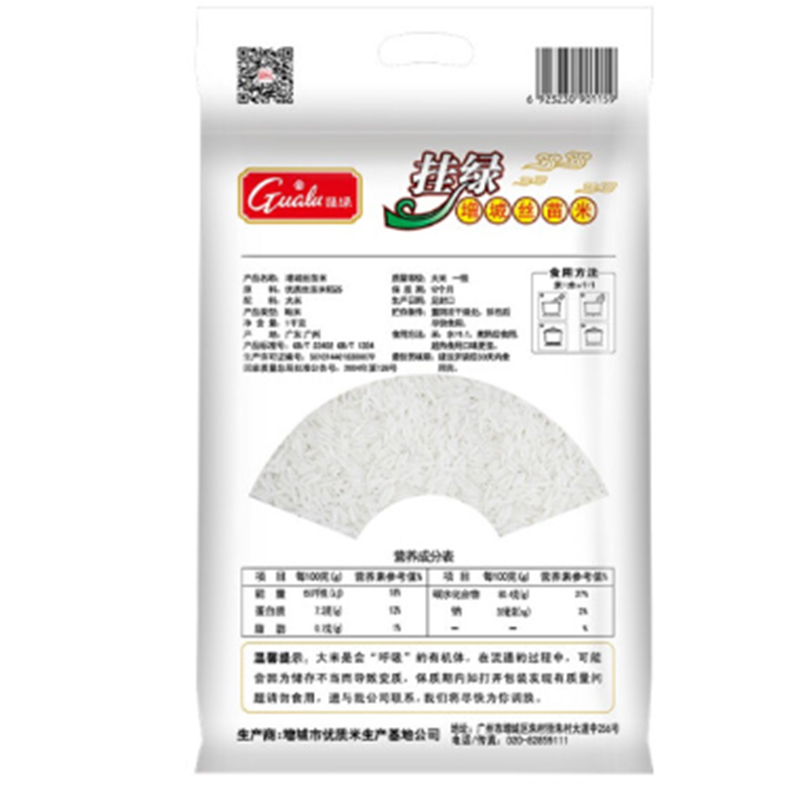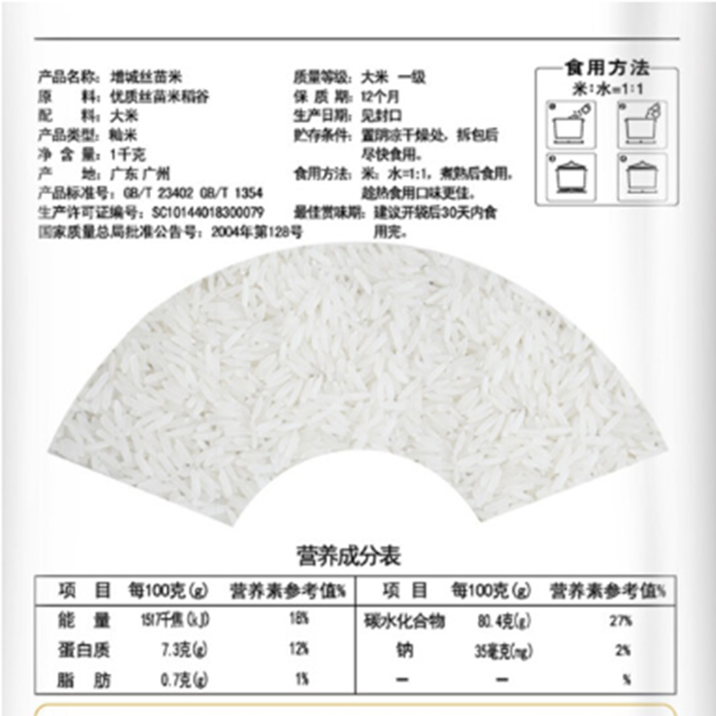 商品名称:挂绿-丝苗米国家地标增城特产南方籼米大米-1kg-单位:包-起订量10包
