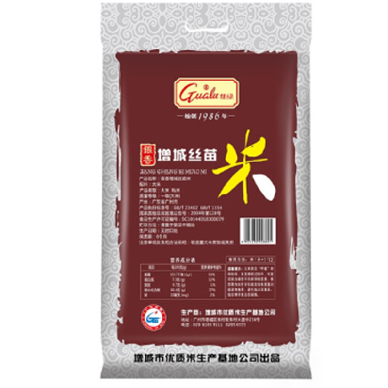 挂绿-增城丝苗米国家地标银香南方籼米大米-10kg-单位:包 -起订量10包