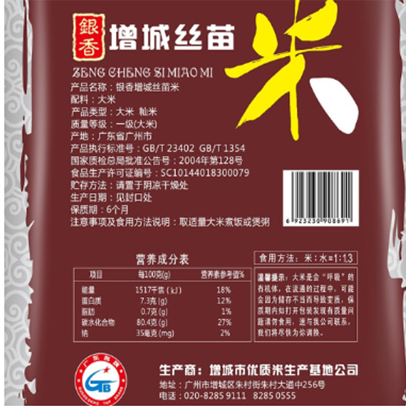 商品名称:挂绿-增城丝苗米国家地标银香南方籼米大米-10kg-单位:包 -起订量10包