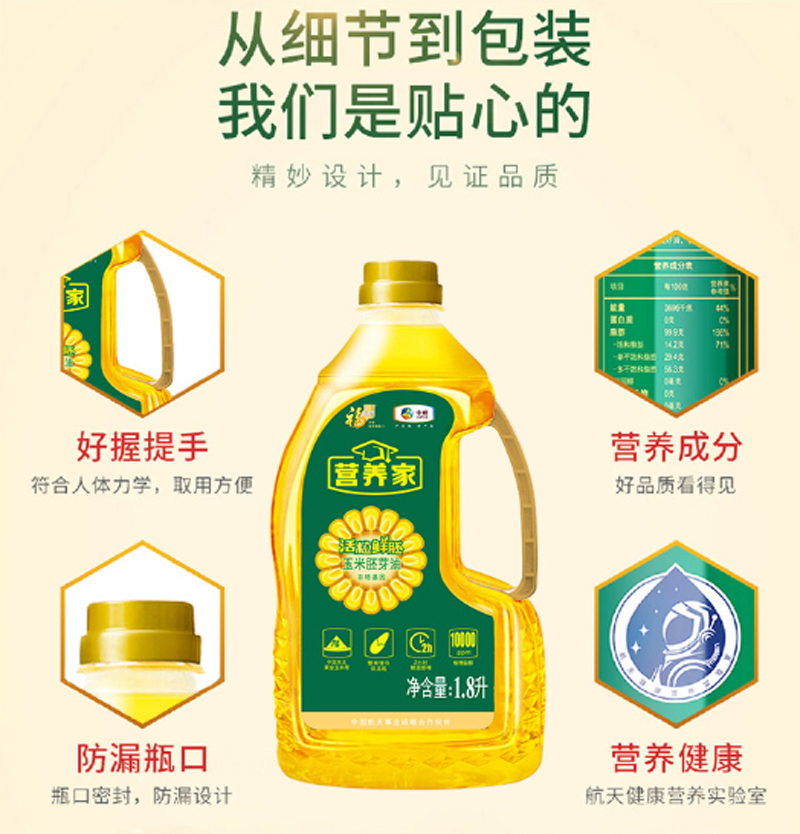 福临门-非转基因玉米胚芽油-1.8L-单位:瓶