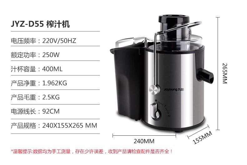 商品名称:九阳/Joyoung 榨汁机家用全自动果蔬汁 JYZ-D55