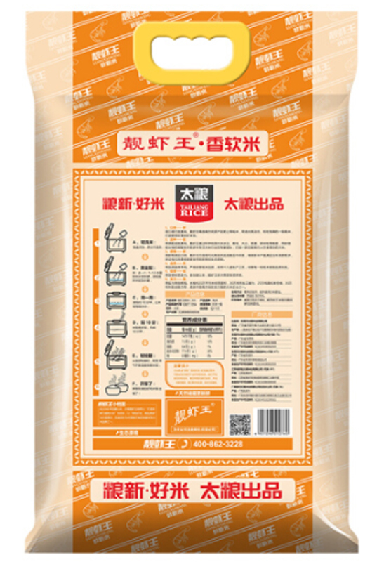 商品名称:太粮-靓虾王香软米油粘米籼米大米-5kg -单位:袋 -50袋起订