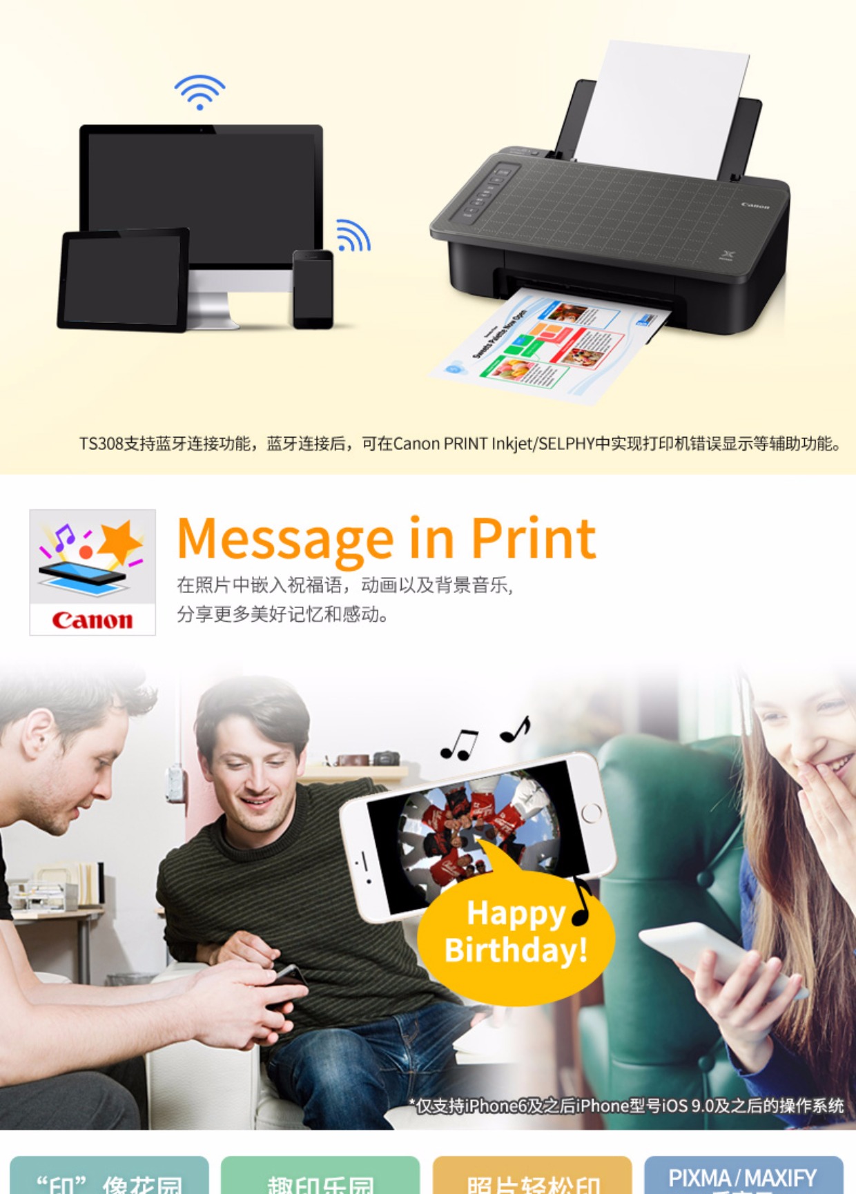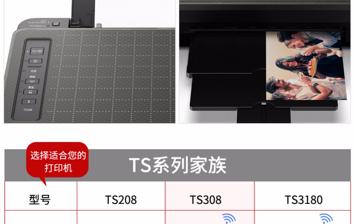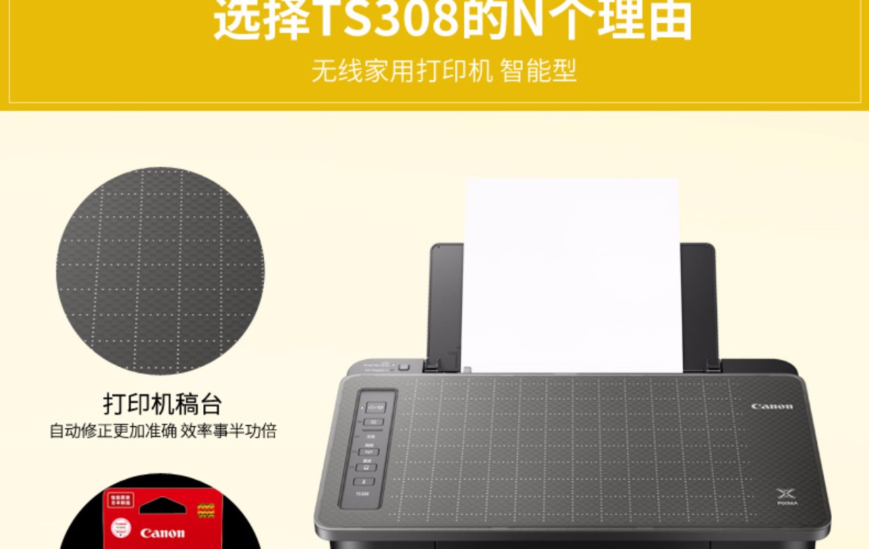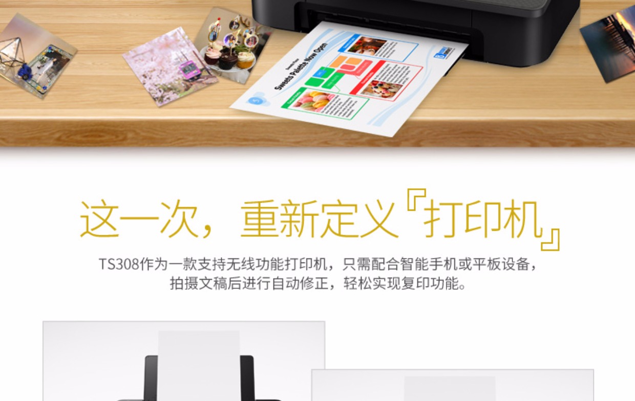 商品名称:佳能/Canon 无线家用打印机 智能型 彩色喷墨 TS308