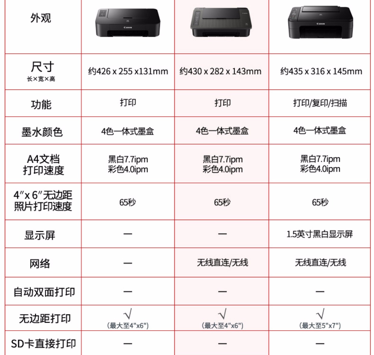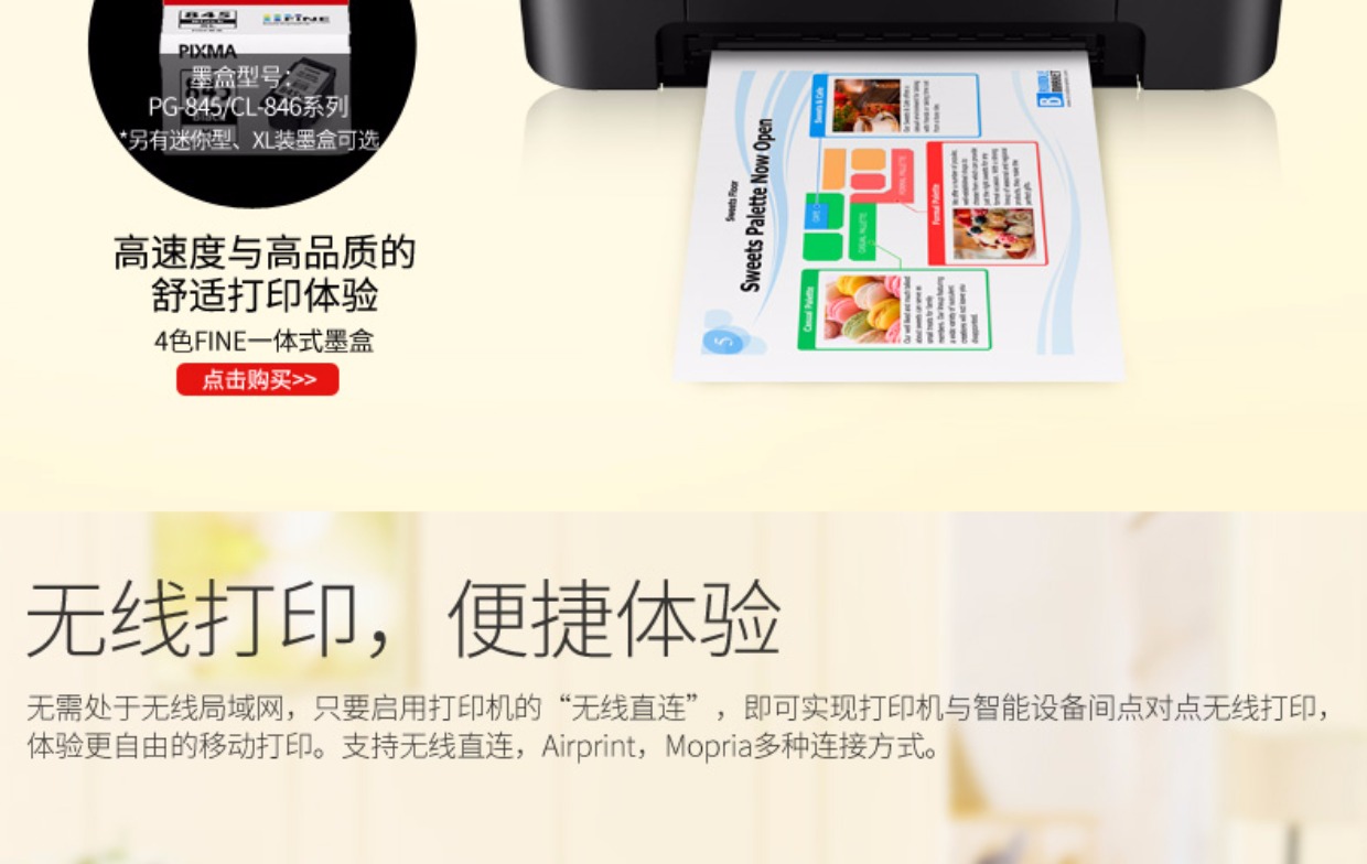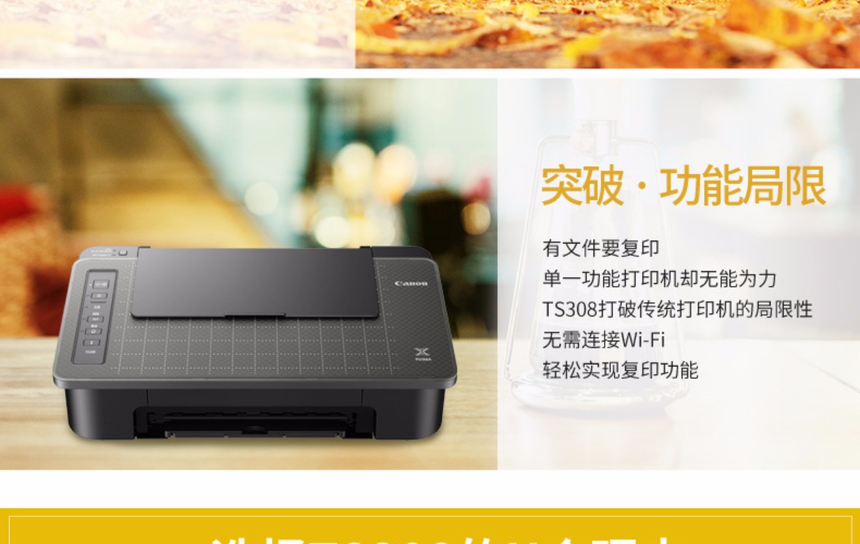 商品名称:佳能/Canon 无线家用打印机 智能型 彩色喷墨 TS308
