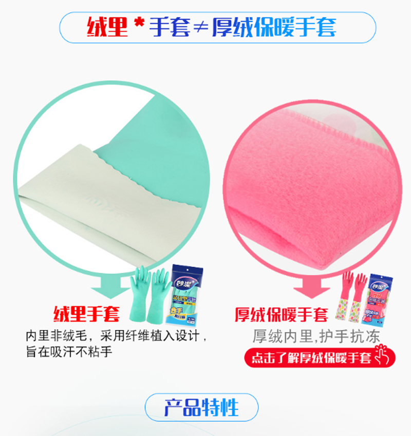 商品名称:妙洁-绒里手套-灵巧型-中号-单位:套—起订量10双