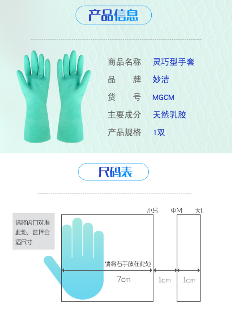 妙洁-绒里手套-灵巧型-中号-单位:套—起订量10双