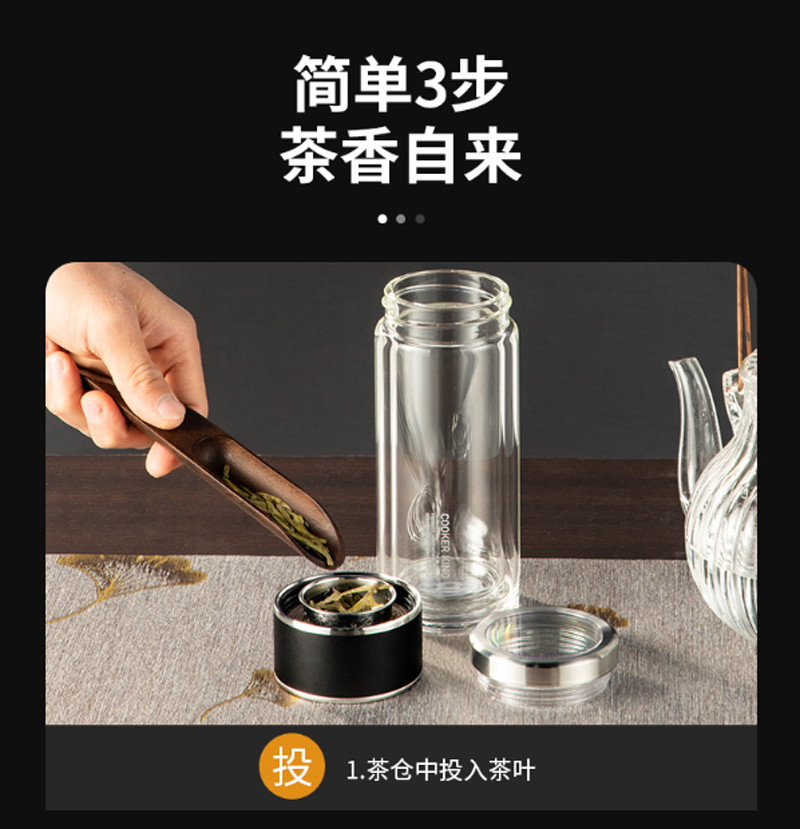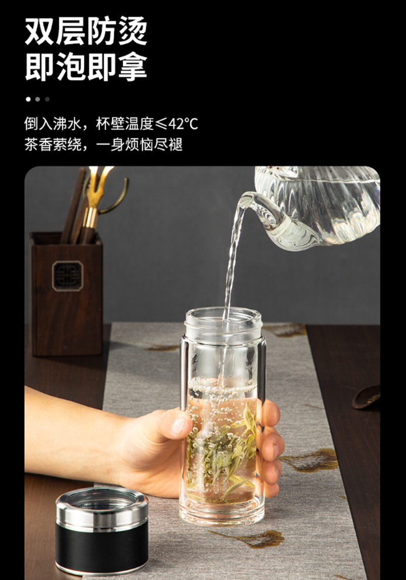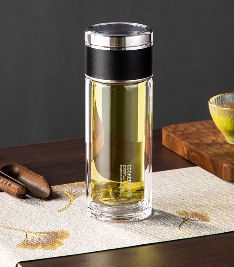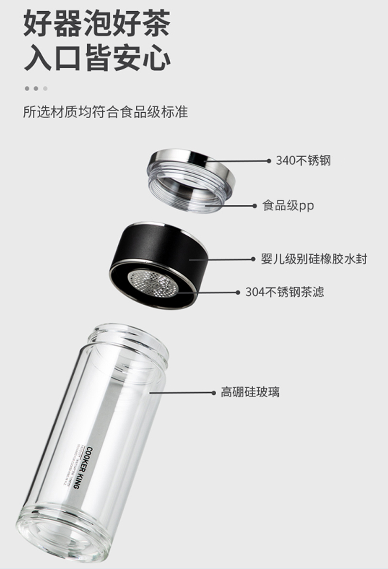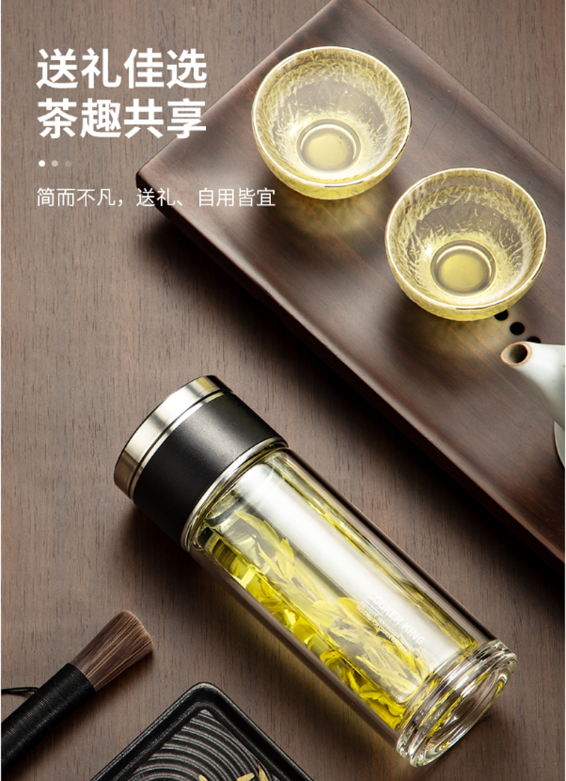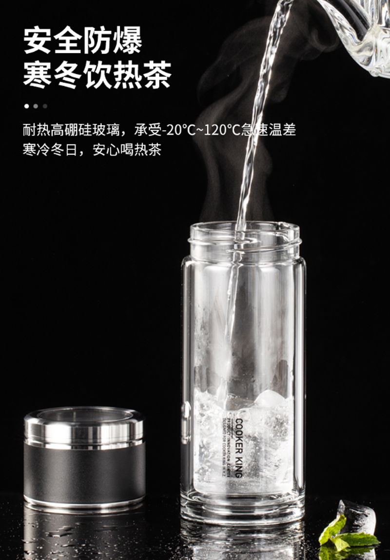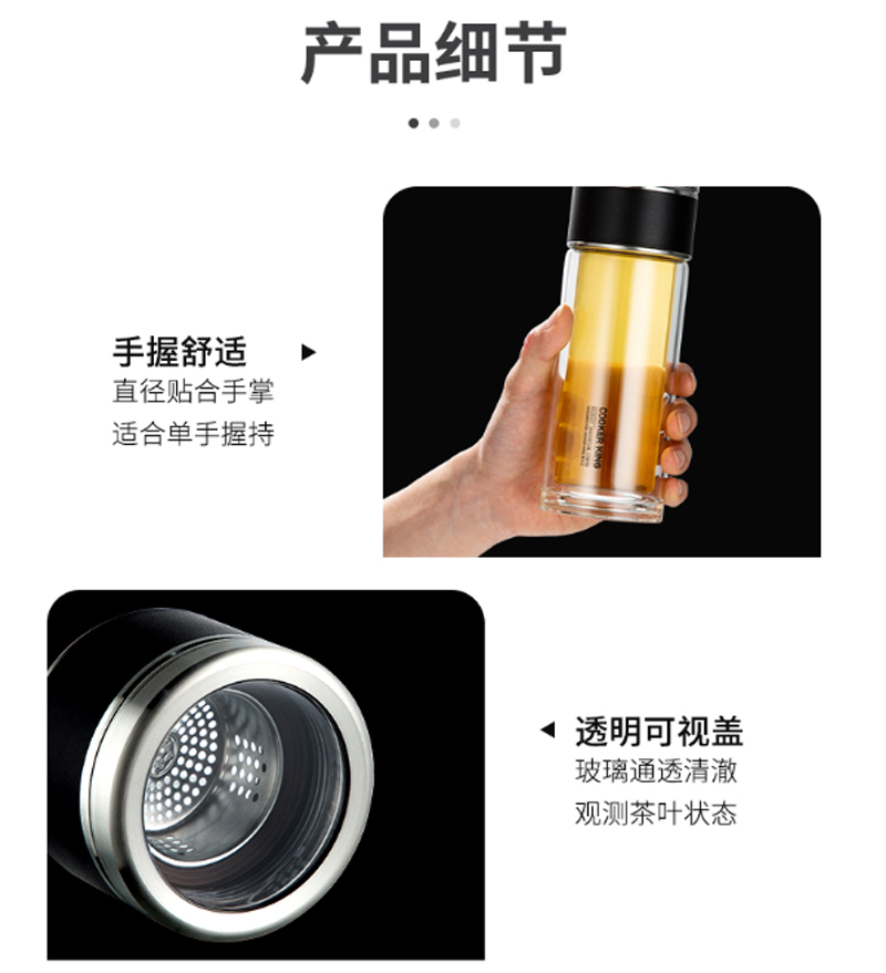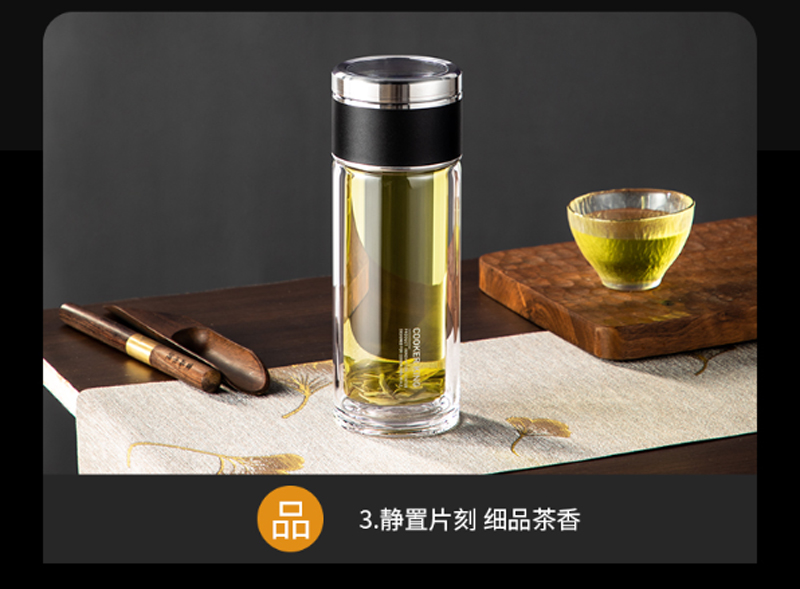 商品名称:炊大皇-HM26A2-和茗茶水分离玻璃杯-260ml-海水蓝-单位:个