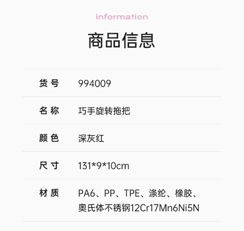 商品名称:茶花-994009-巧手旋转拖把-黑色-单位:把-起订量2把
