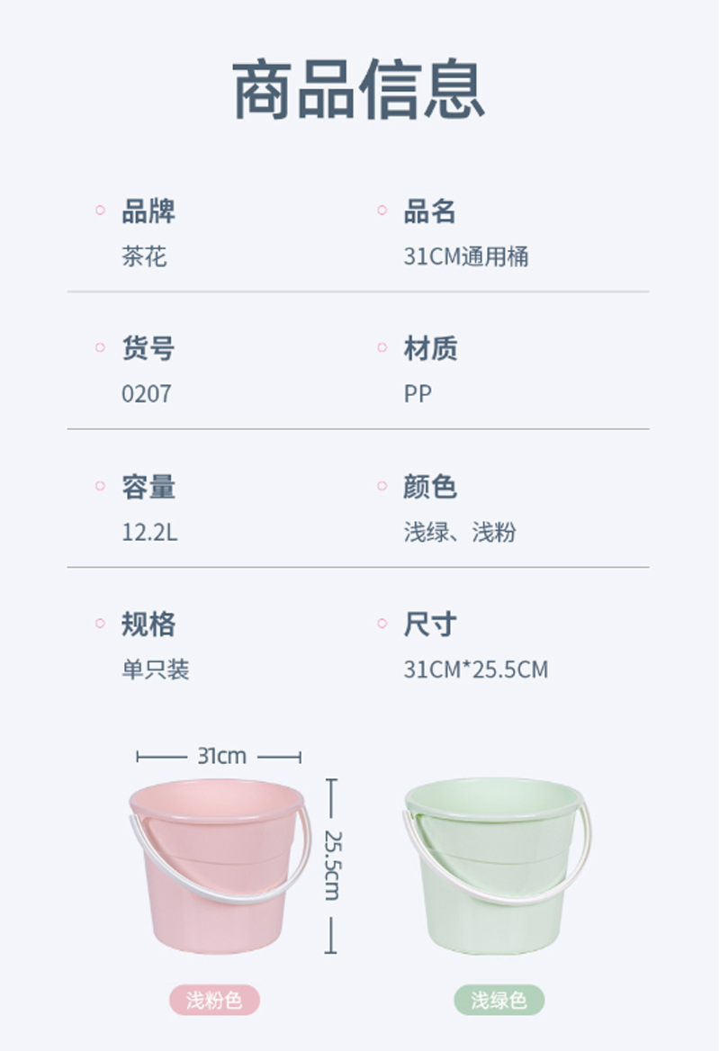 商品名称:茶花-0207-塑料水桶31CM 12.2L-浅绿色/浅粉色-单位:个-起订量10个