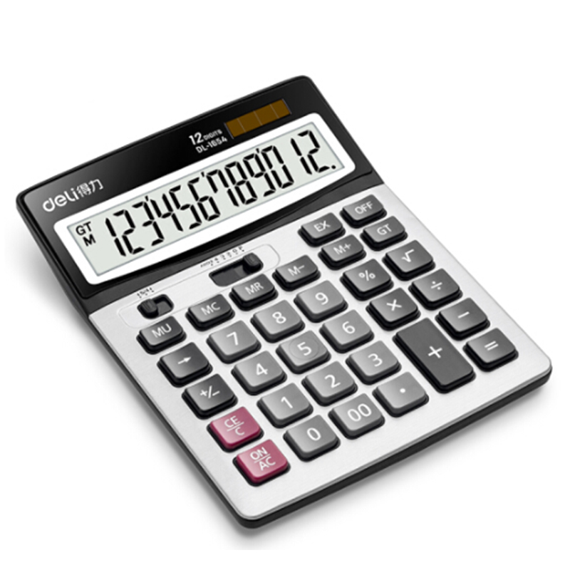 得力(deli)-1654-双电源宽屏办公桌面计算器-财务计算机-办公文具用品-银灰色-单位:个
