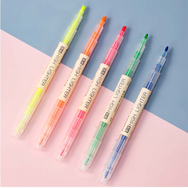 齐心(Comix)-HP9105-双头荧光笔重点标记笔手帐笔水性记号笔线幅(0.8-3.4mm)- 5支/盒- 5色-单位:盒-起订量3袋