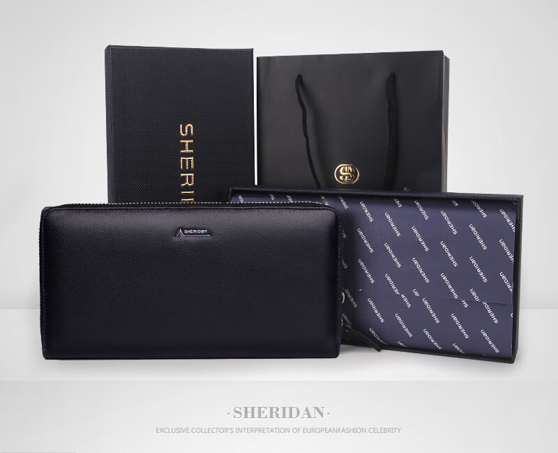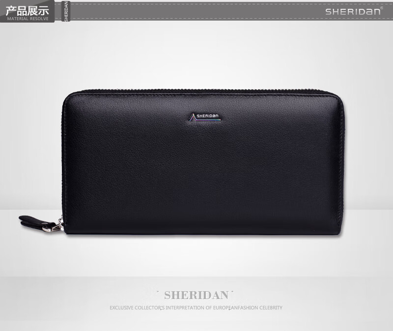Sheridan 钱包男长款拉链商务 黑色真皮多功能钱包钱夹 NL161013S