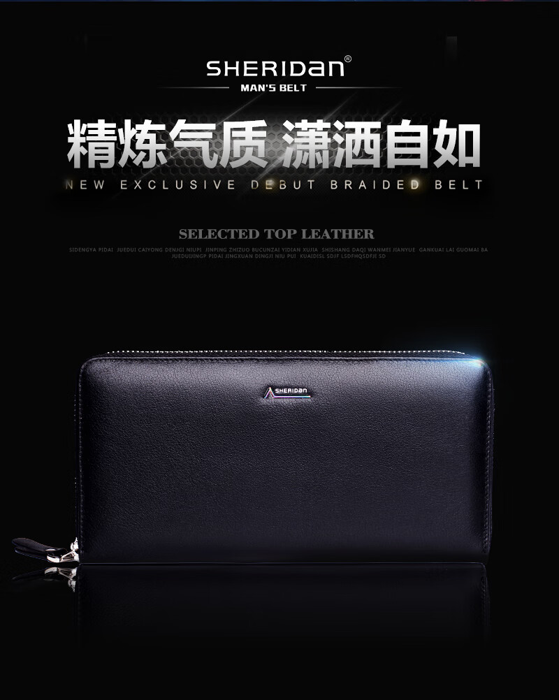 商品名称:Sheridan 钱包男长款拉链商务 黑色真皮多功能钱包钱夹 NL161013S