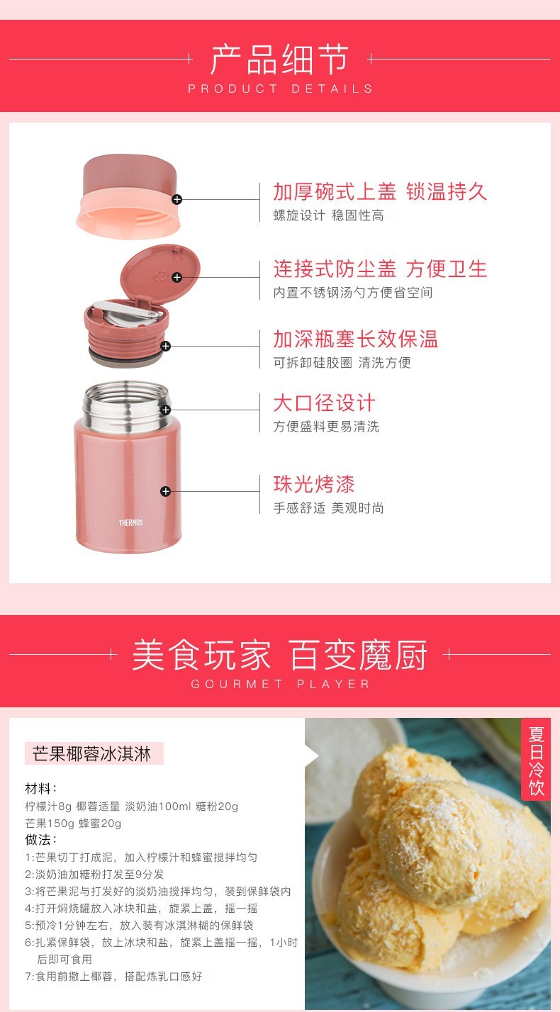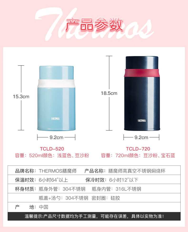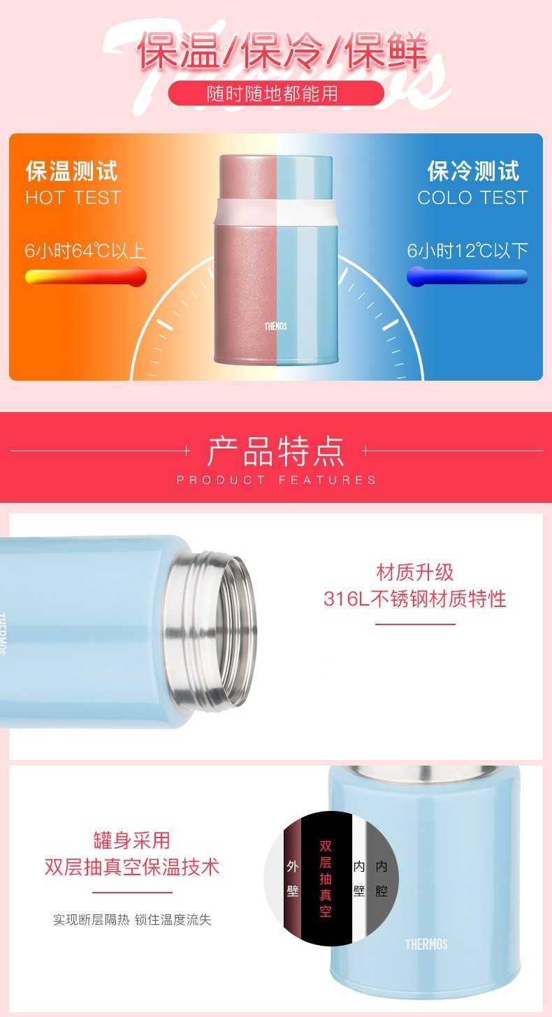 商品名称:膳魔师 高真空不锈钢保温食物罐 TCLD-520 浅蓝色