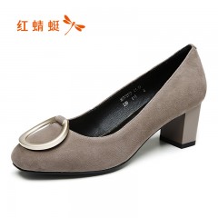 红蜻蜓 女鞋秋季新款时尚方头圆扣高跟鞋粗跟皮鞋子女单鞋