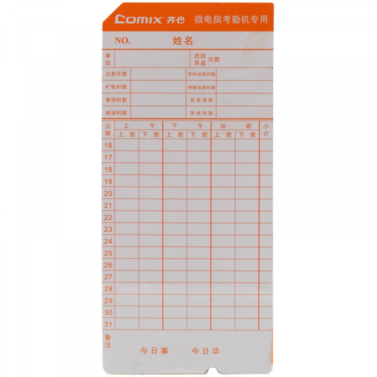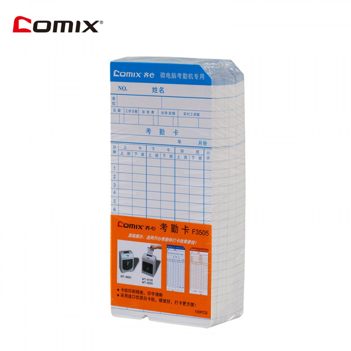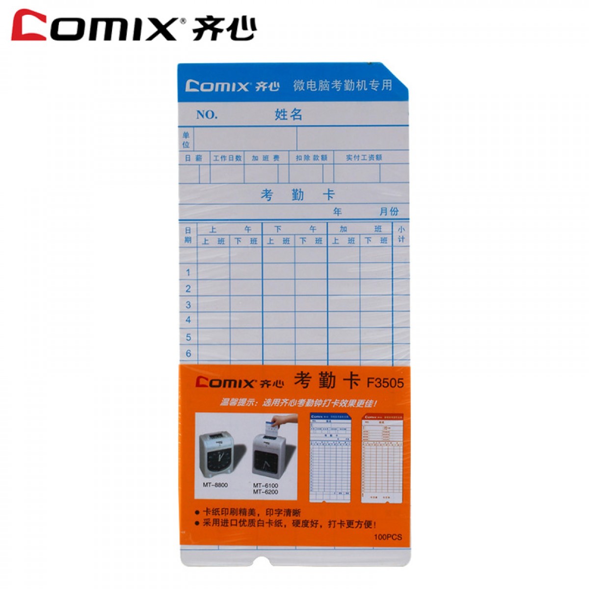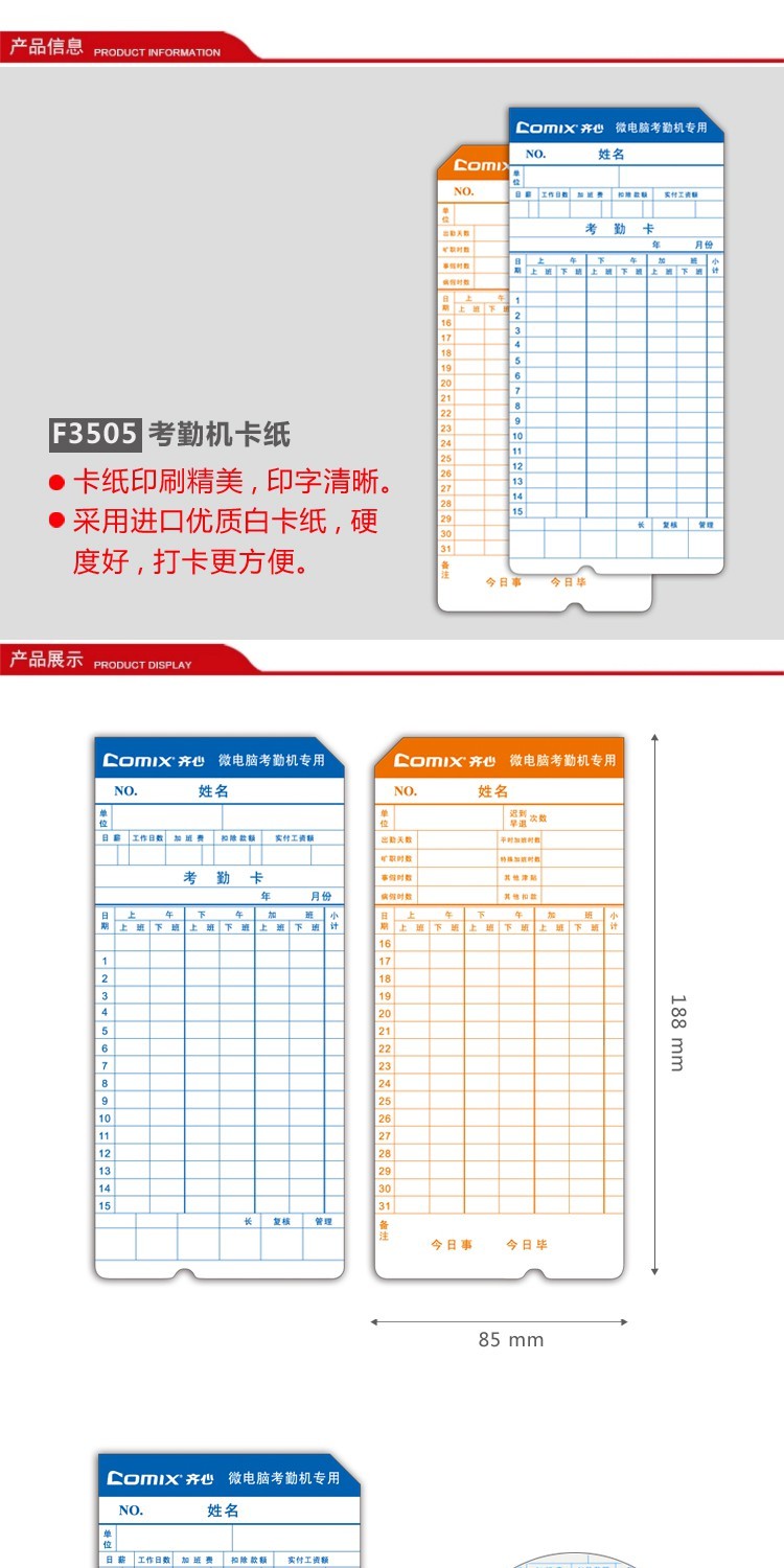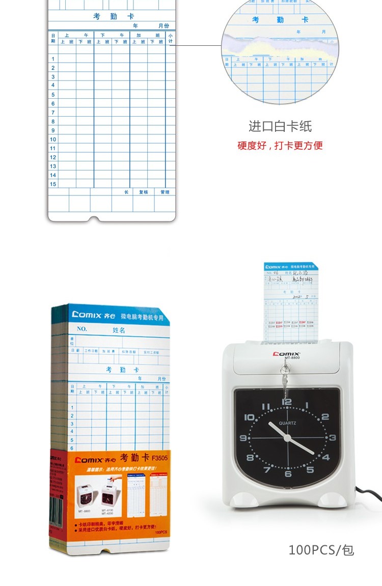 商品名称:齐心 F3505 考勤卡纸 打卡纸 考勤钟纸卡 100张/包 通用考勤卡