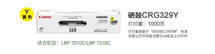 商品名称:佳能/Canon 原装硒鼓 CRG329Y (适用LBP7010C、LBP7018C)