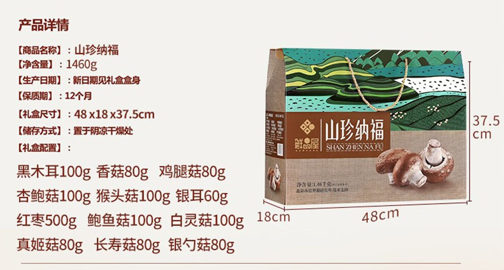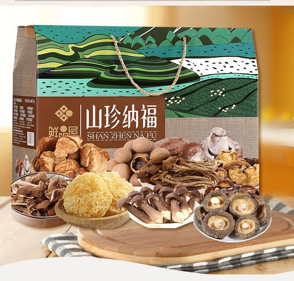商品名称:鲜品屋山珍干菌礼盒南北干货菌菇组合大礼包端午节礼盒山珍佳礼员工福利 山珍纳福1460g