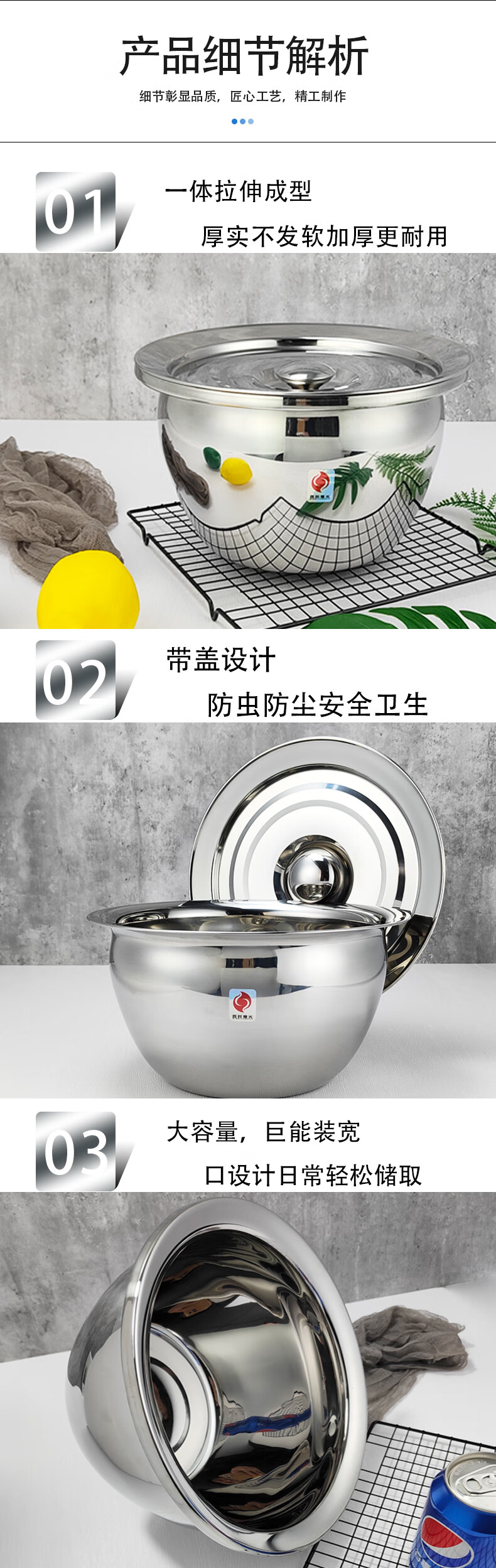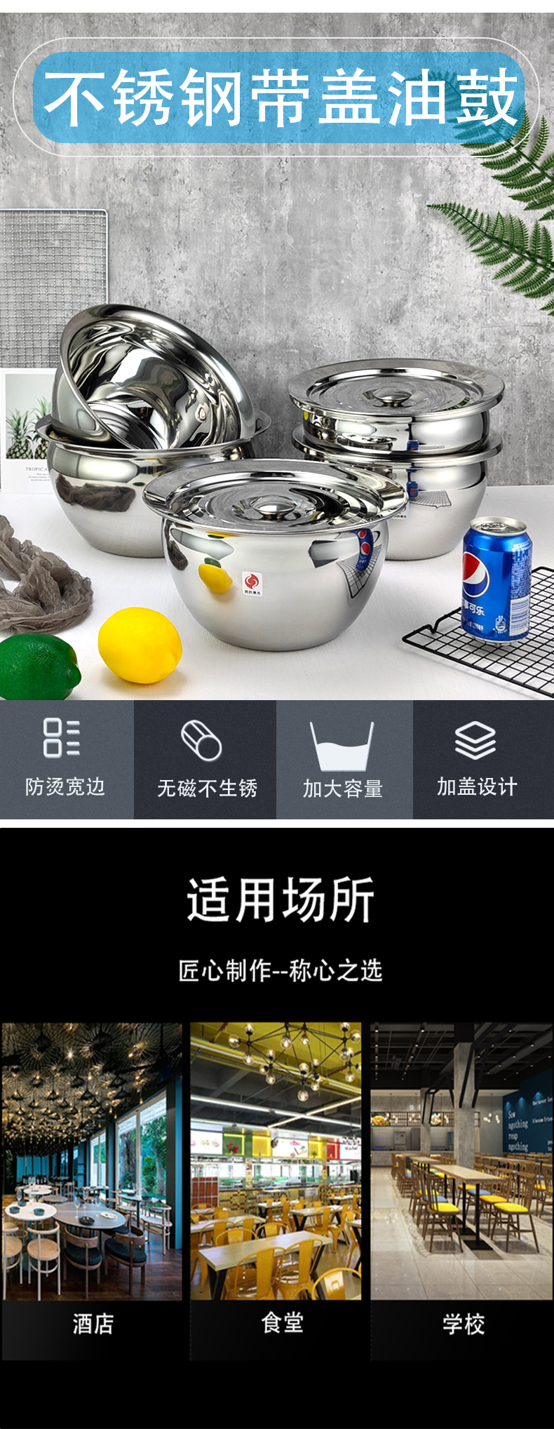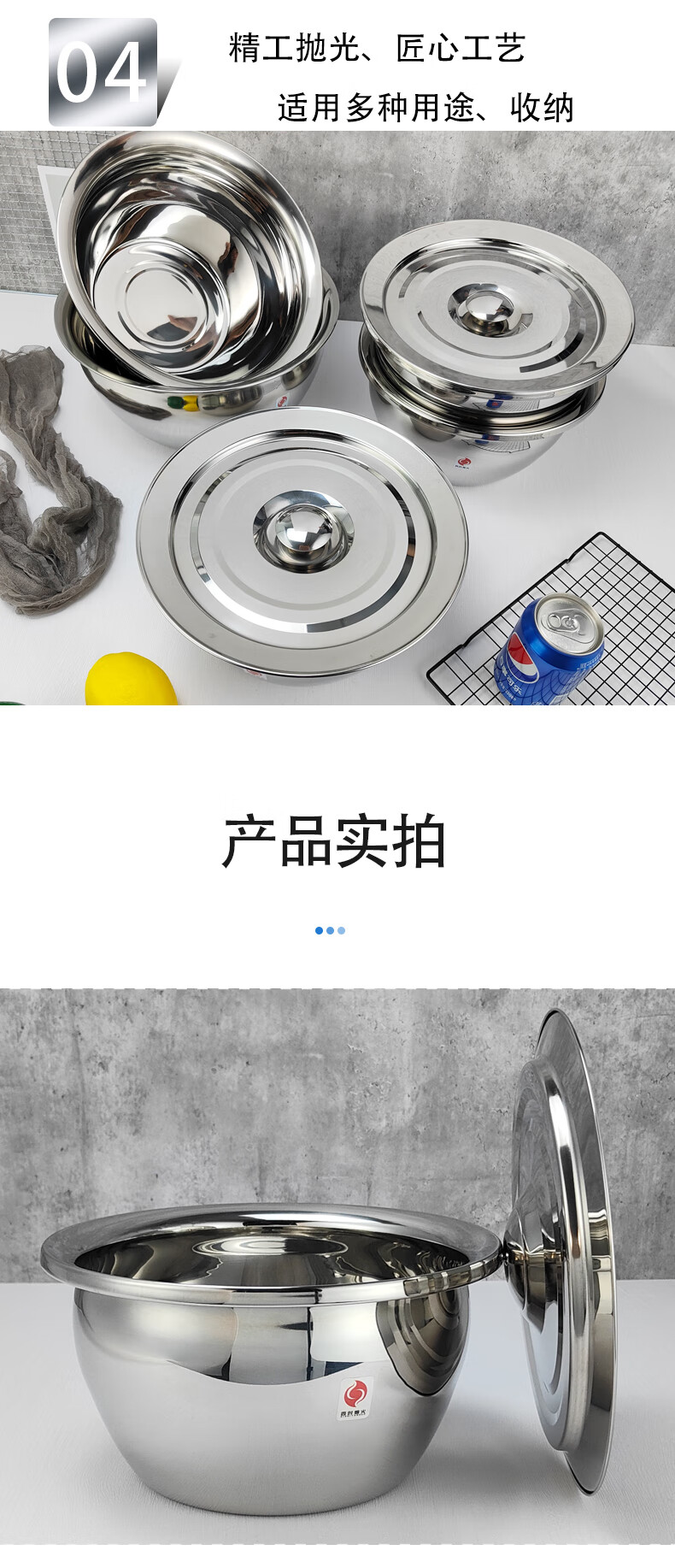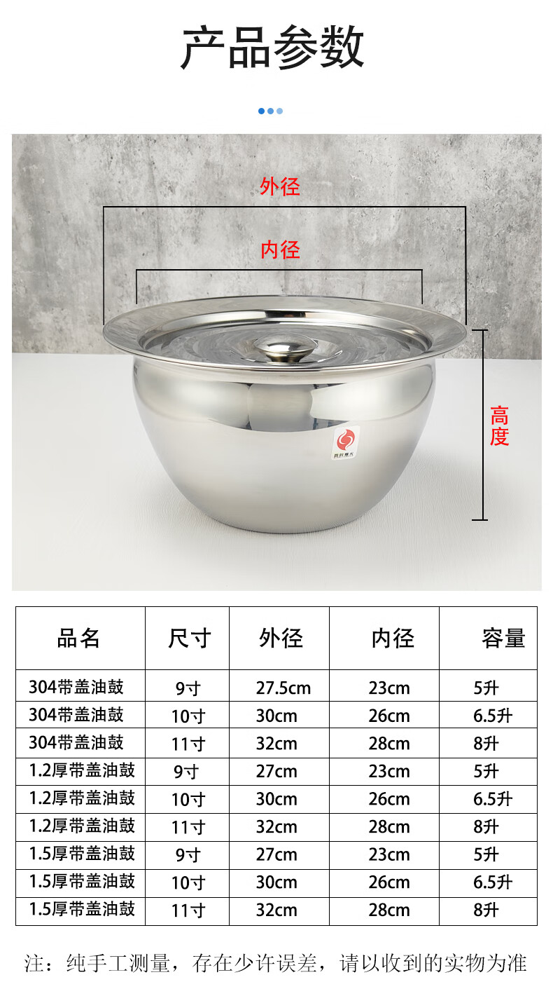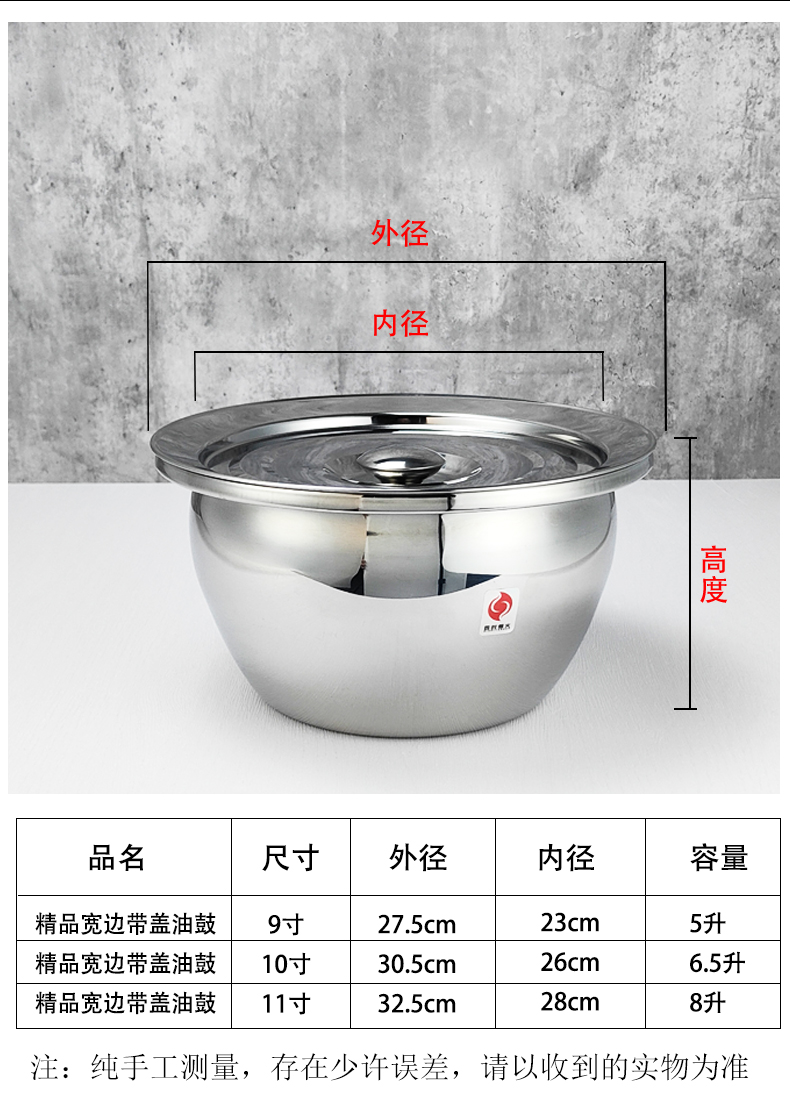 商品名称:四时烟火 不锈钢油鼓和面盘 精品宽边带盖 11寸