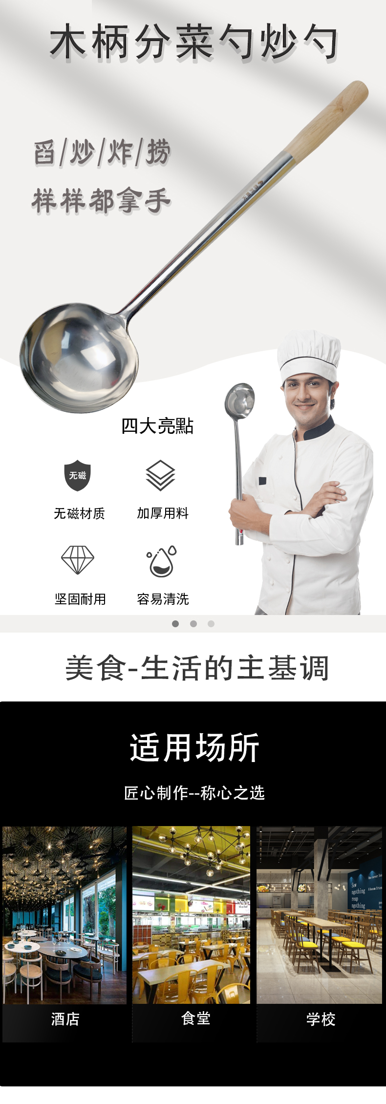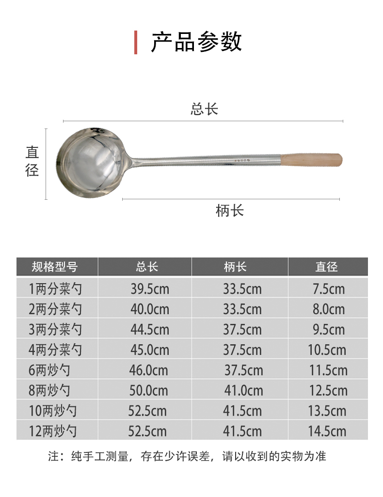 商品名称:四时烟火 木柄厨师勺食堂分菜勺 6两 炒勺 5个起订 单位:个