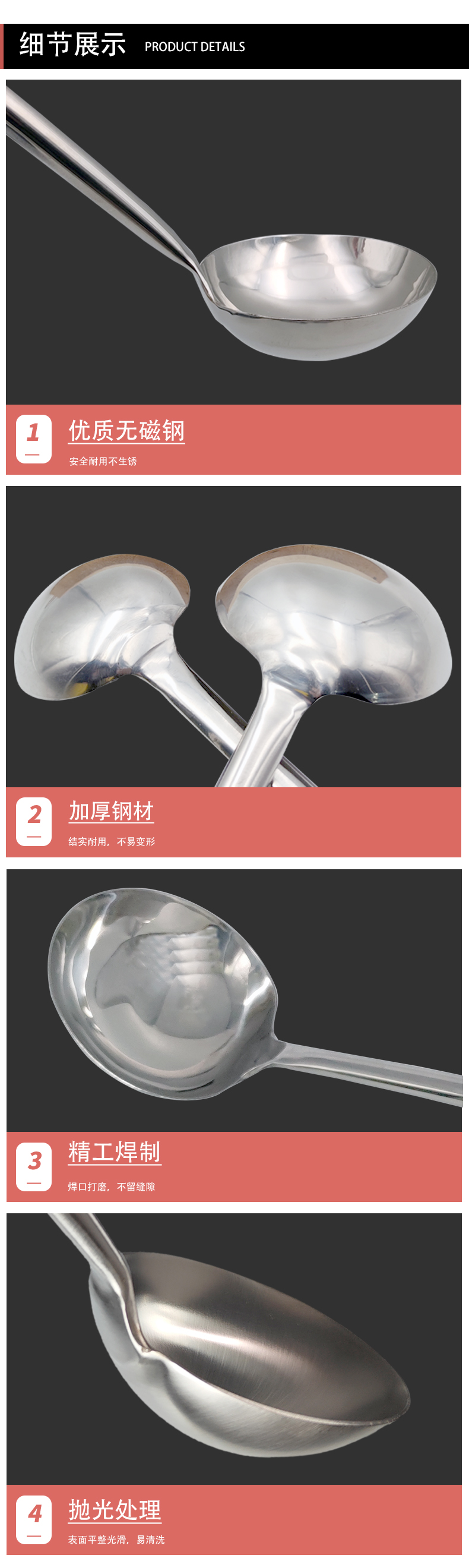 四时烟火 钢柄厨师勺子 2两分菜勺 5个起订 单位:个