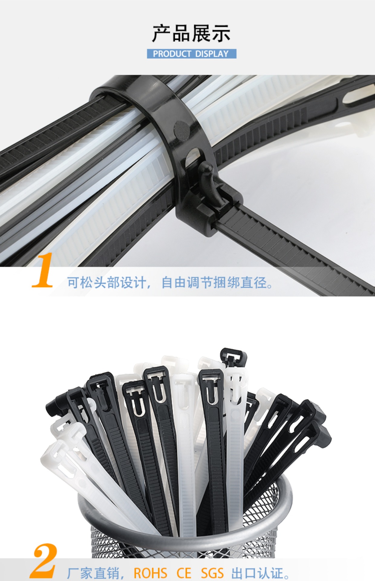 商品名称:牛利 100条加宽可松拆卸扎带卡扣 8*300可退式尼龙捆绑带 活扣塑料扎线