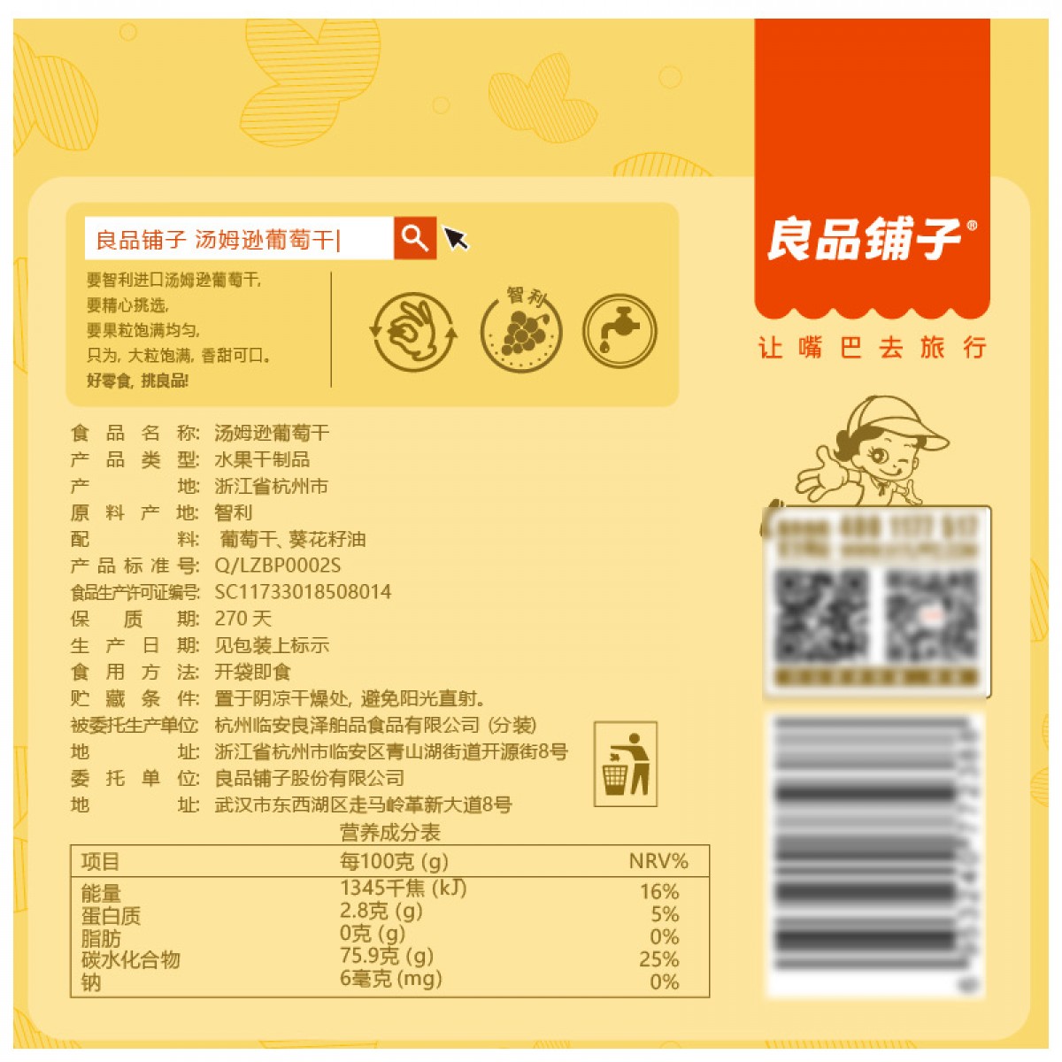 商品名称:良品铺子 汤姆逊红提干200g葡萄干果干果脯蜜饯葡萄干休闲零食