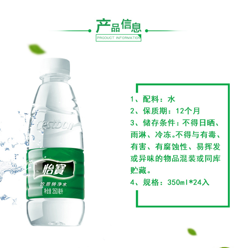 商品名称:怡宝 纯净水350ml*24瓶整箱 纸箱矿泉水怡宝水矿物质水