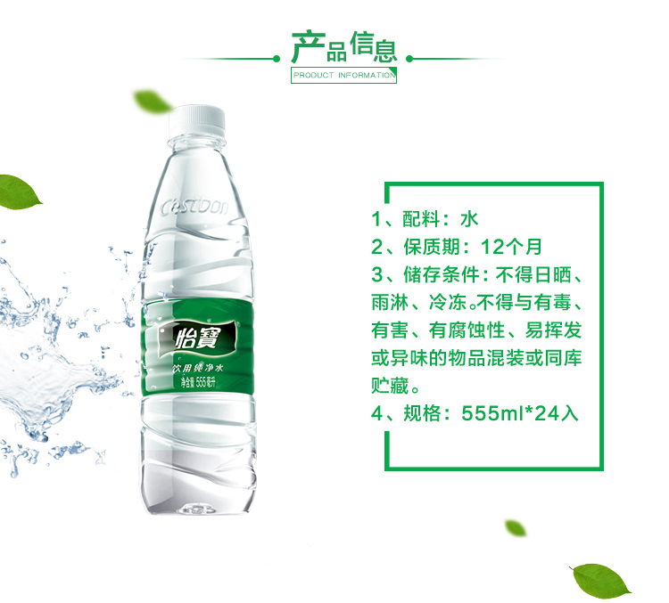 商品名称:怡宝 矿泉水555ml*24瓶整箱 矿泉水怡宝纯净水饮用水纸箱
