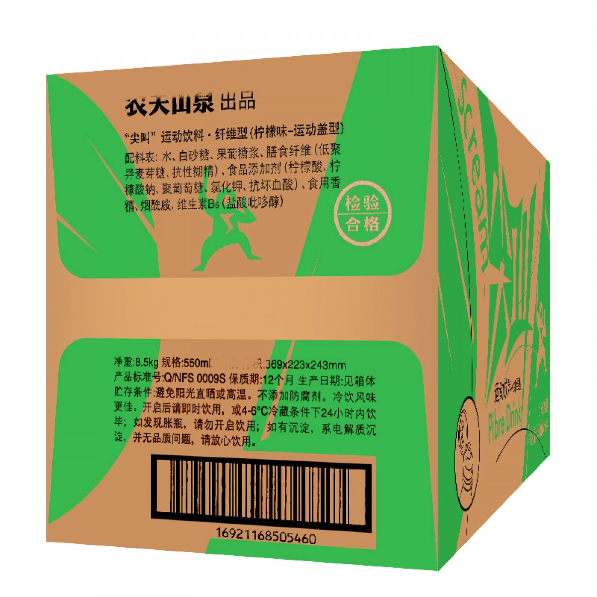 商品名称:农夫山泉尖叫 运动饮料纤维型550ml*24瓶/箱尖叫绿