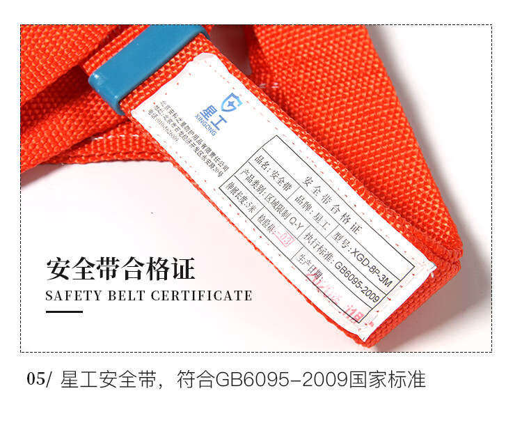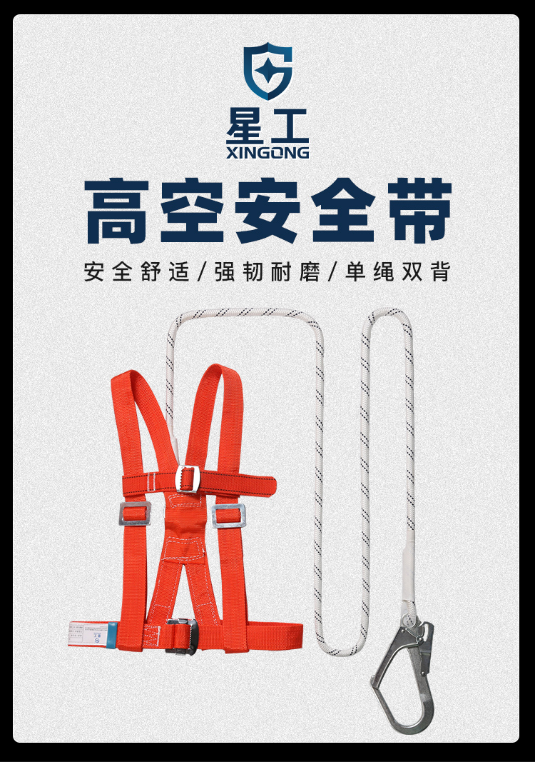 商品名称:星工(XINGGONG)安全带 高空作业户外施工身体防护定制单钩双背式安全绳 3米绳大钩 单位:套 3套起订