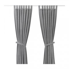 伦达 窗帘2片装含系带 纯色纯棉客厅卧室吊带