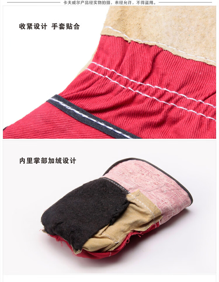 商品名称:卡夫威尔 劳保手套 短款猪皮电焊手套 YJ1015A 单位:付 5付起订