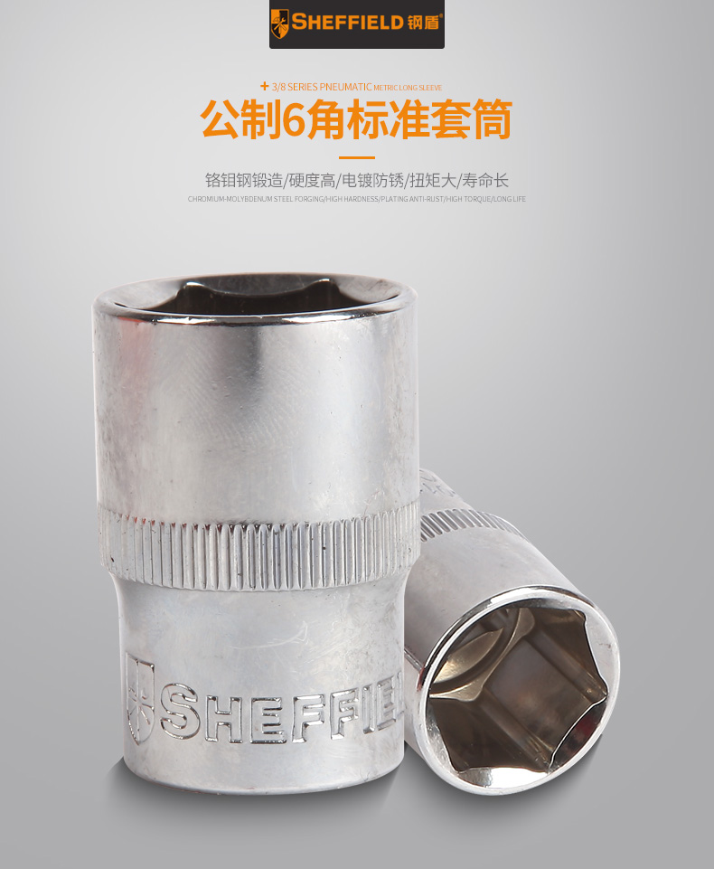 钢盾 SHEFFIELD S010104 6.3mm系列公制6角标准套筒4mm系列公制六角套筒1/4标准六角旋具套筒板 10个起订