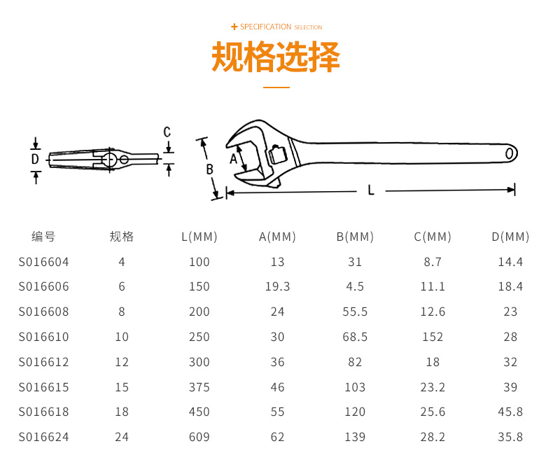 商品名称:钢盾 SHEFFIELD S016610 活络扳手
