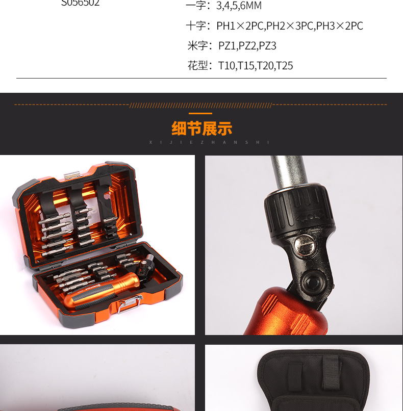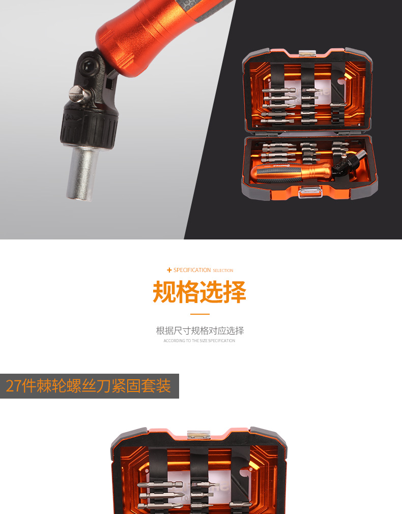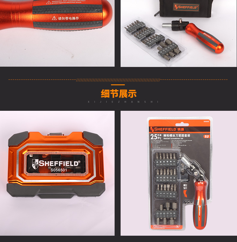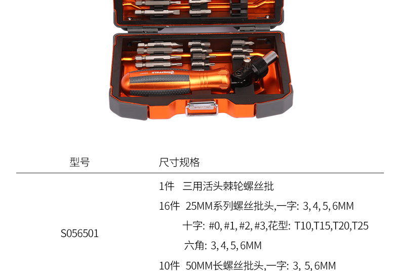 商品名称:钢盾 SHEFFIELD S056501 27件棘轮螺丝刀紧固套装 十字一字长短棘轮螺丝刀
