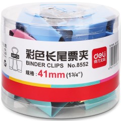 得力 筒装彩色长尾夹41mm 大号票夹子(24筒装/彩色)