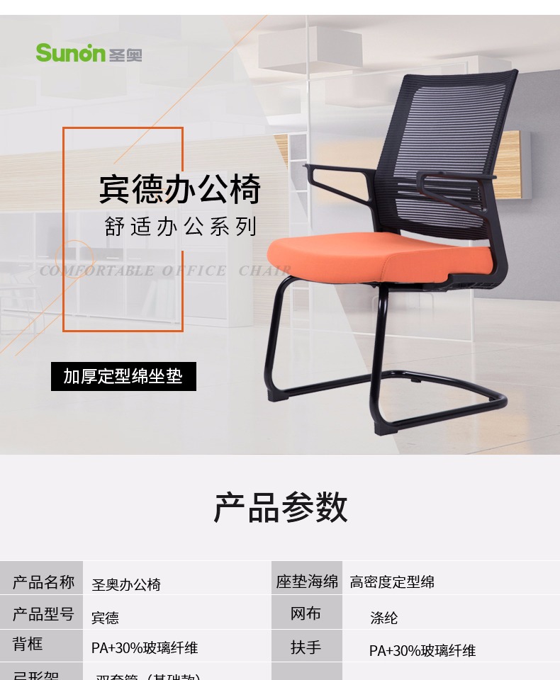 商品名称:圣奥 办公椅 人体工学电脑椅 弓形电脑椅子家用 简约现代职员椅