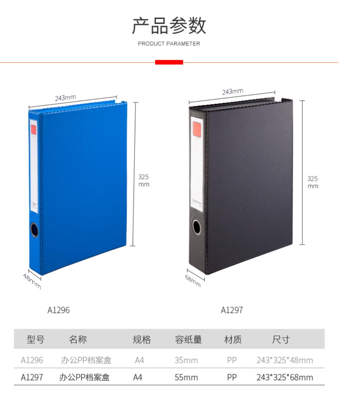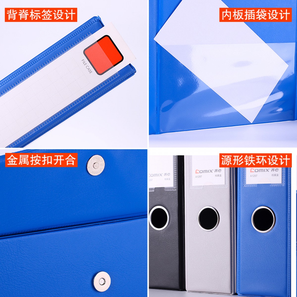 商品名称:齐心 A1296 A1297磁扣式档案盒 PVC防水资料盒 文件盒35 55mm