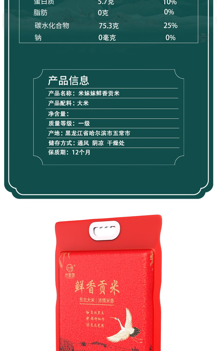 米妹妹 五常大米(精选)5kg 单位:袋