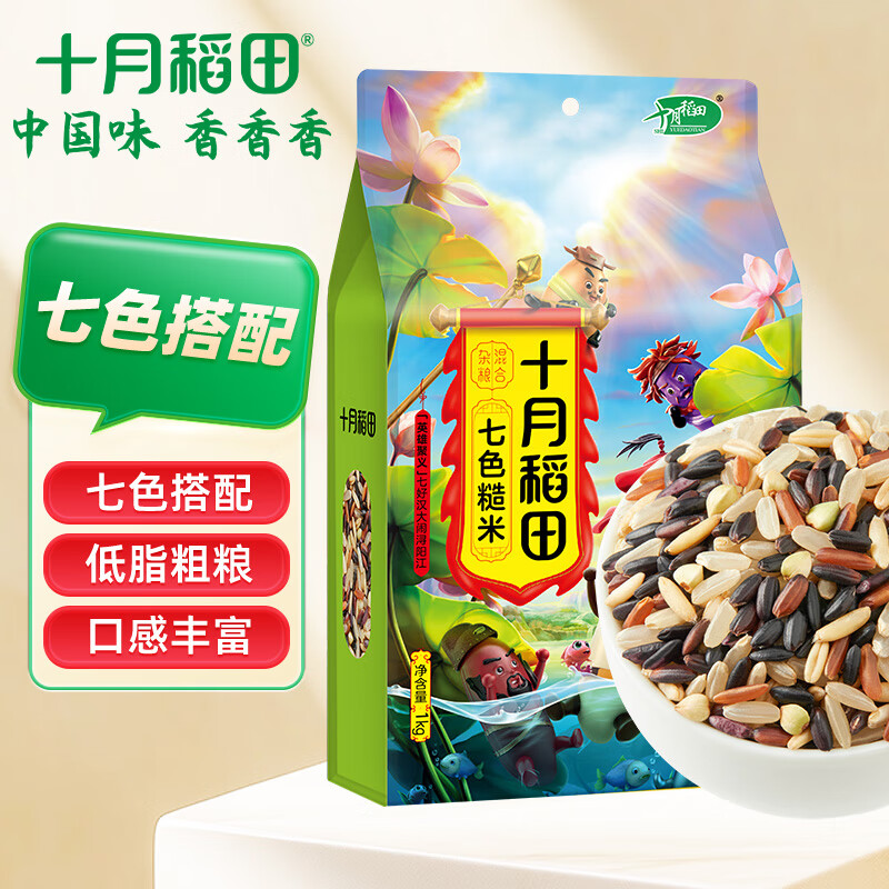 商品名称:十月稻田 七色糙米 1kg 糙米 黑米 红米 燕麦米 杂粮粗粮 大米伴侣 2斤 单位:袋