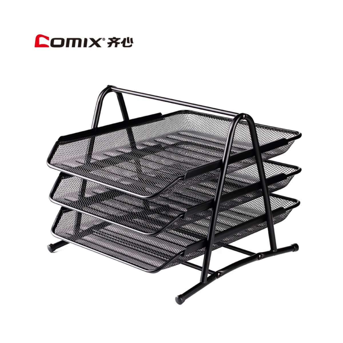 商品名称:齐心 金属网格三层文件盘文件收纳架资料架文件栏黑色B2163文件架