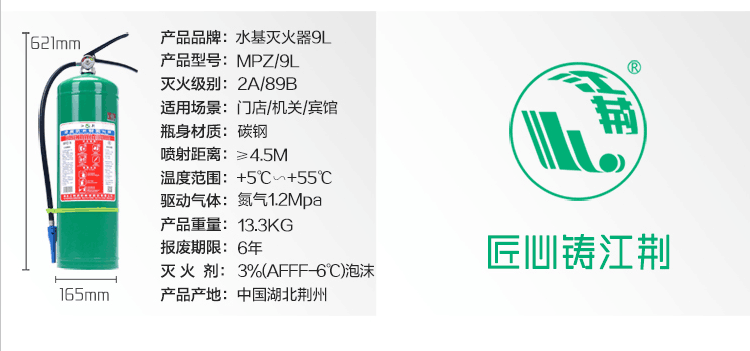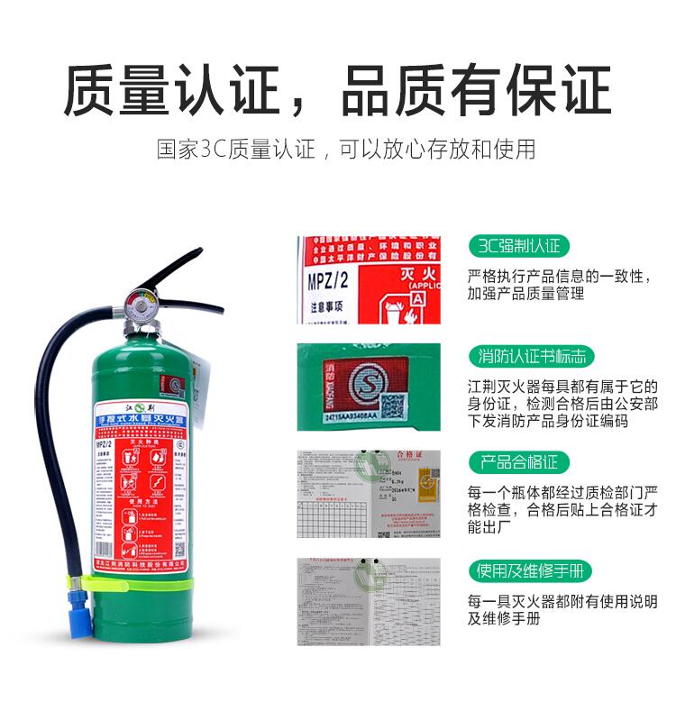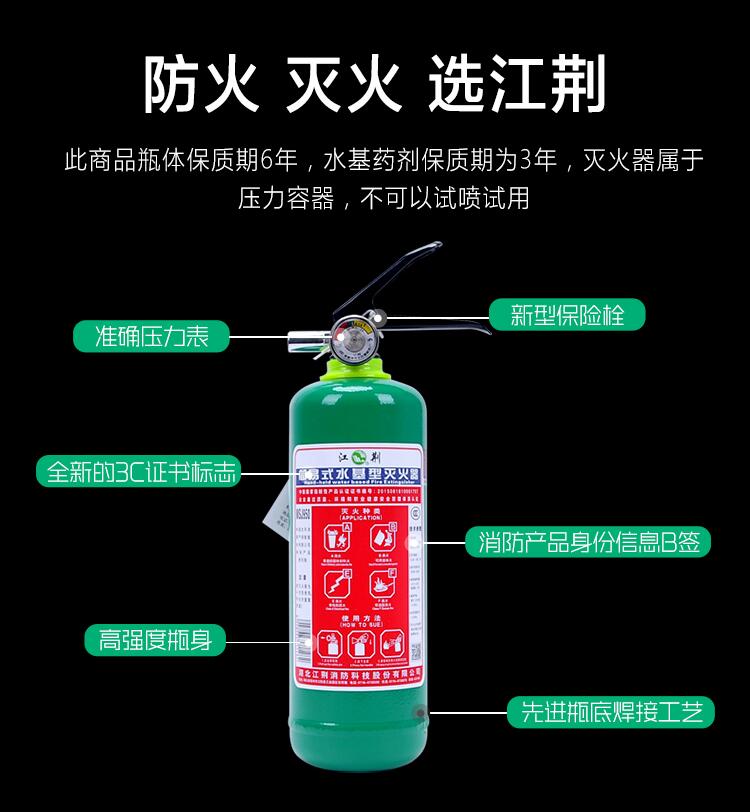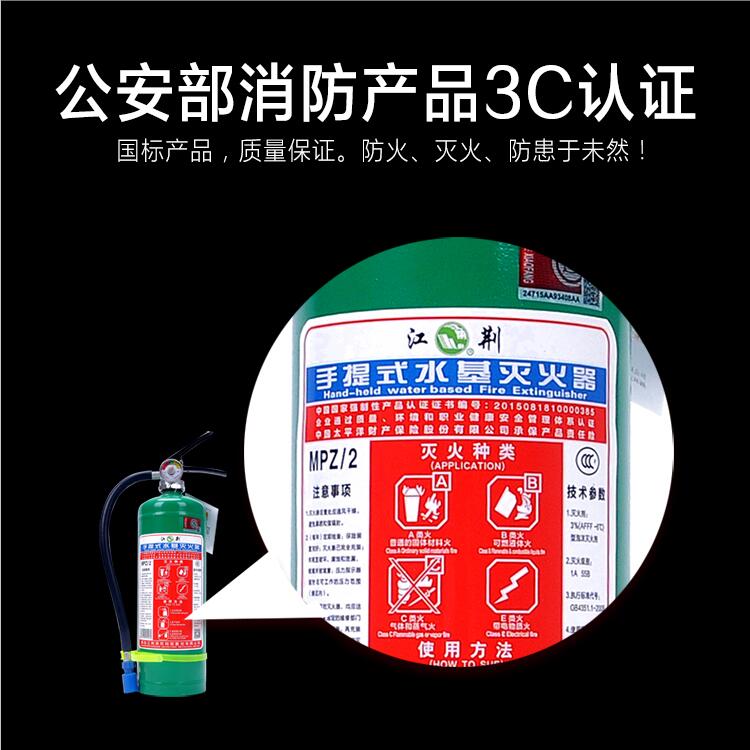 商品名称:江荆 手提式水基型灭火器3升 车载家用及商用灭火器MPZ/3 单位:个