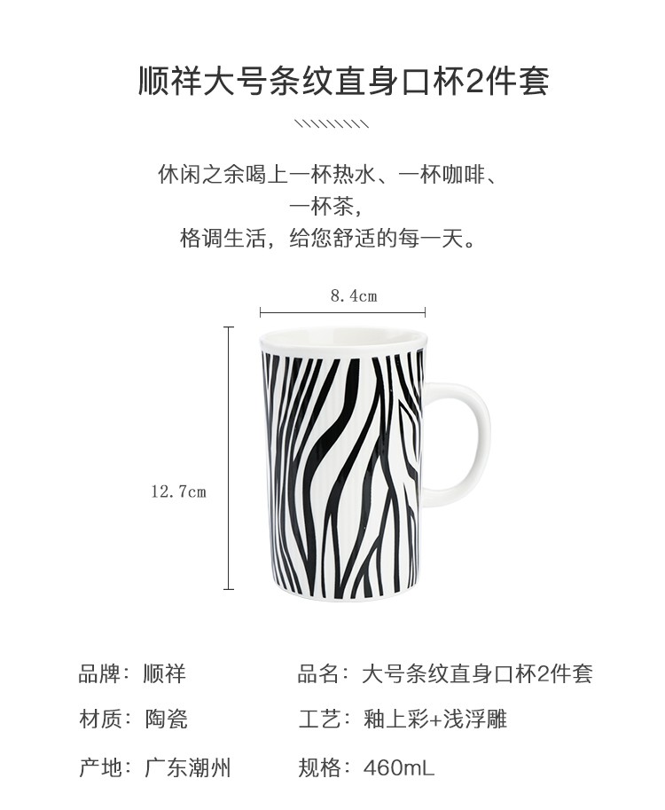 商品名称:顺祥 办公室喝水杯子男 简约马克杯陶瓷杯 创意牛奶杯咖啡杯 情侣杯 早餐杯茶杯 条纹情侣杯2件套 单位:套 3套起订