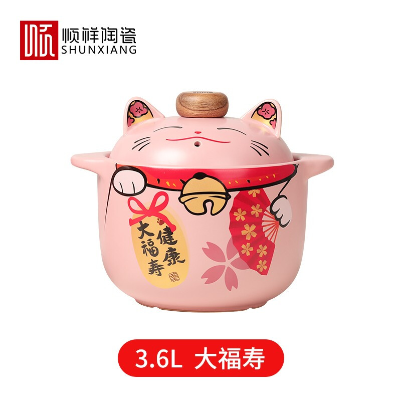 商品名称:顺祥 砂锅汤锅炖锅养生煲猫广府煲陶瓷煲家用燃气耐高温明火直烧炖鸡炖汤煲仔饭 大福寿3.6L 单位:个