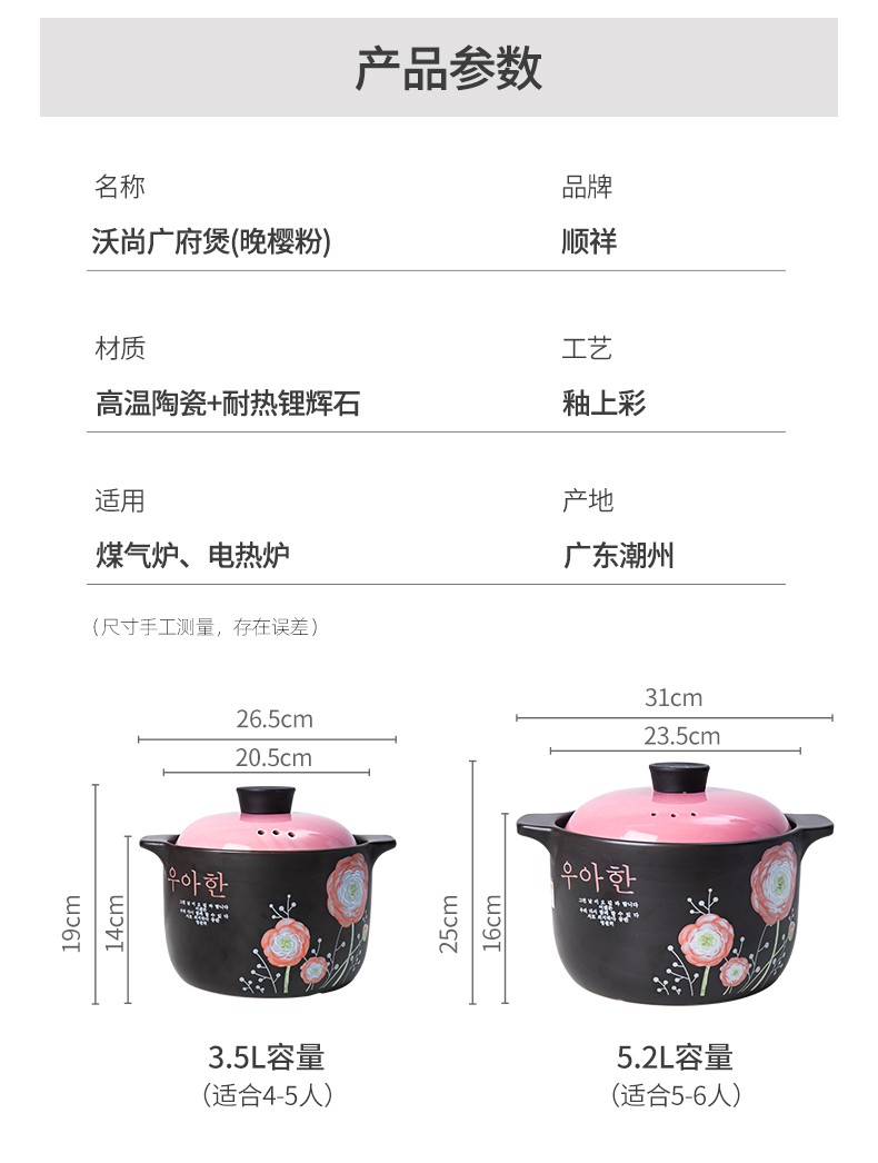 商品名称:顺祥 砂锅 汤锅 石锅 拌饭煲仔饭陶瓷大号 炖汤养生煮粥燃气煤气明火直烧耐高温中药煲 2.6L小时代广府煲-蓝 单位:个