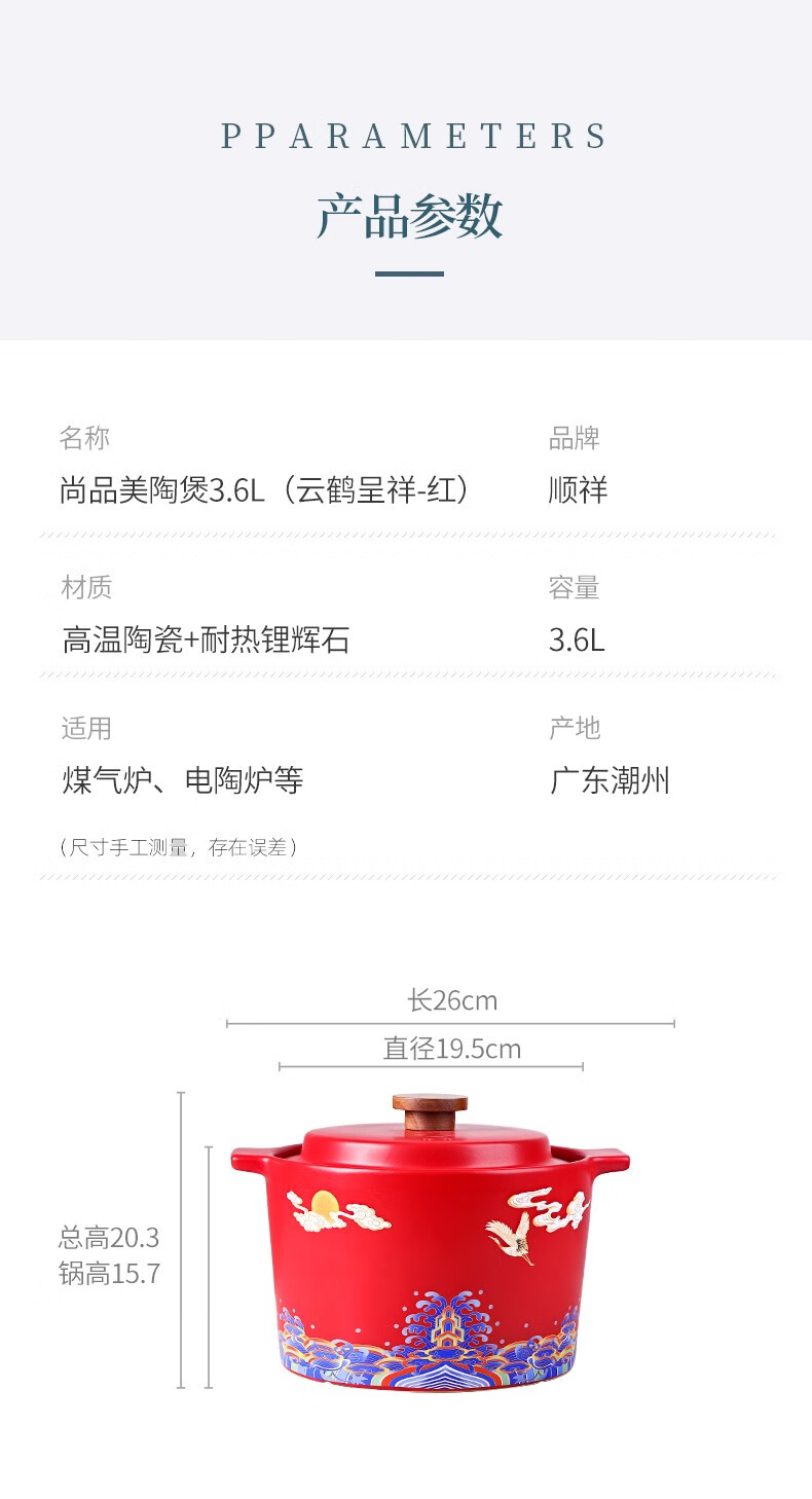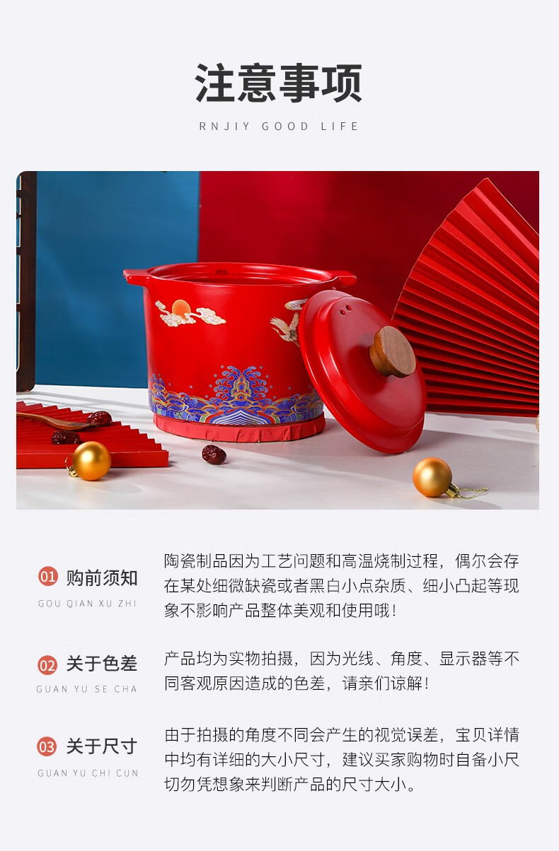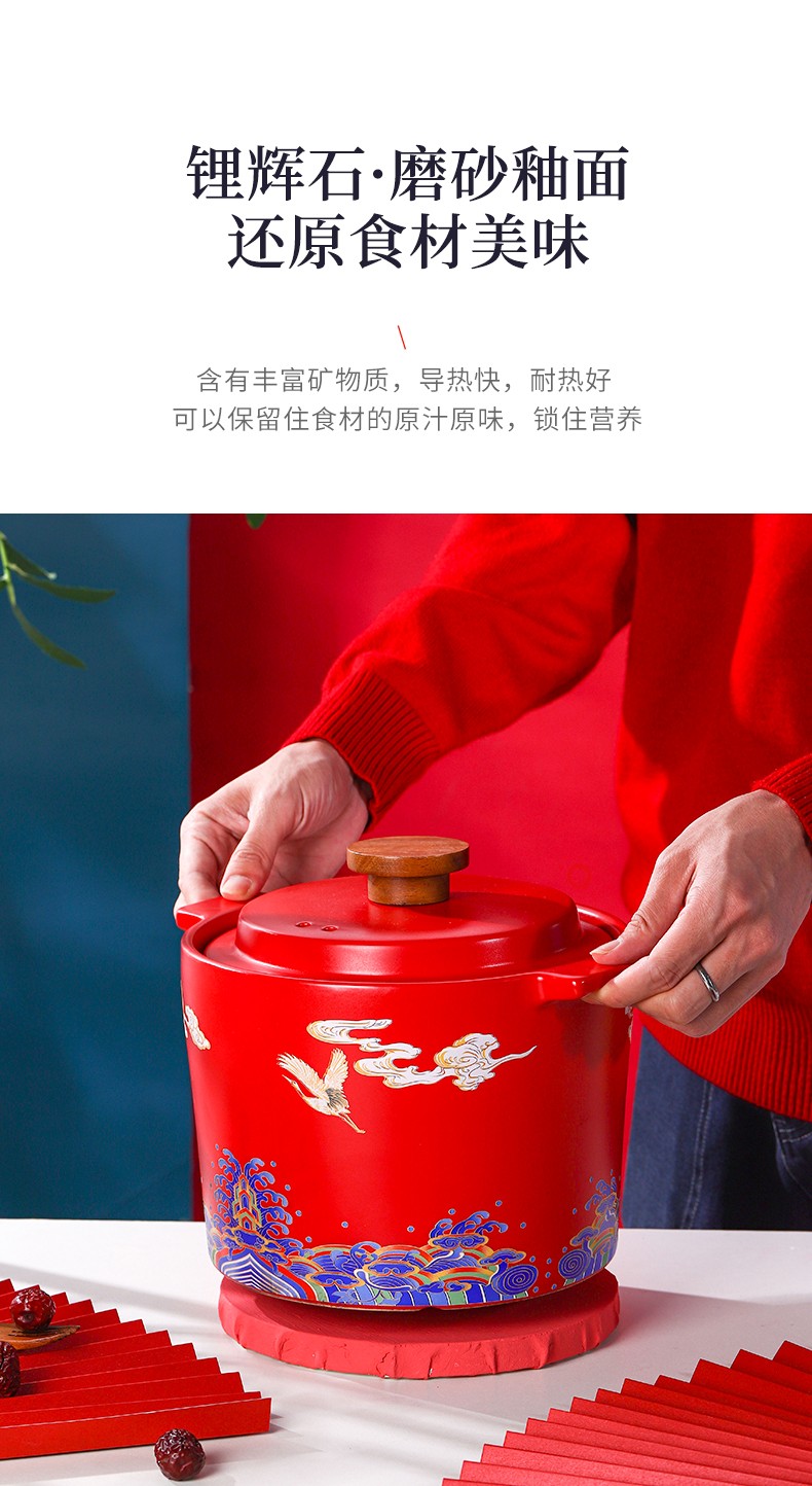 商品名称:顺祥陶瓷煲美观耐用明火直烧多功能汤碗汤锅砂锅可干烧健康养生煲粥锅陶瓷炖锅炖肉家用 2.6L云鹤呈祥礼盒装 单位:盒